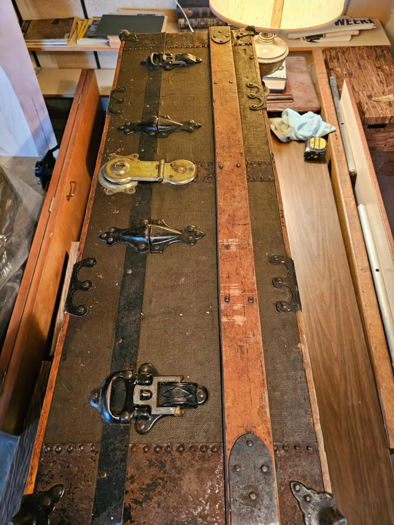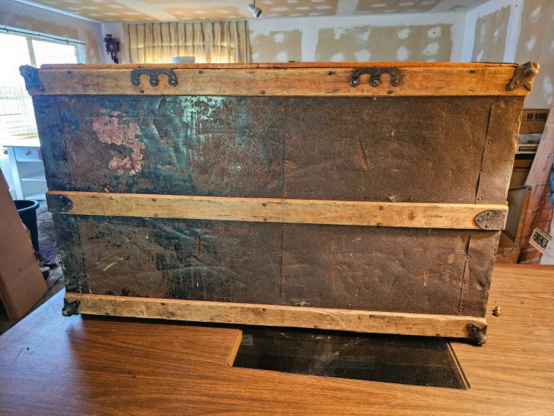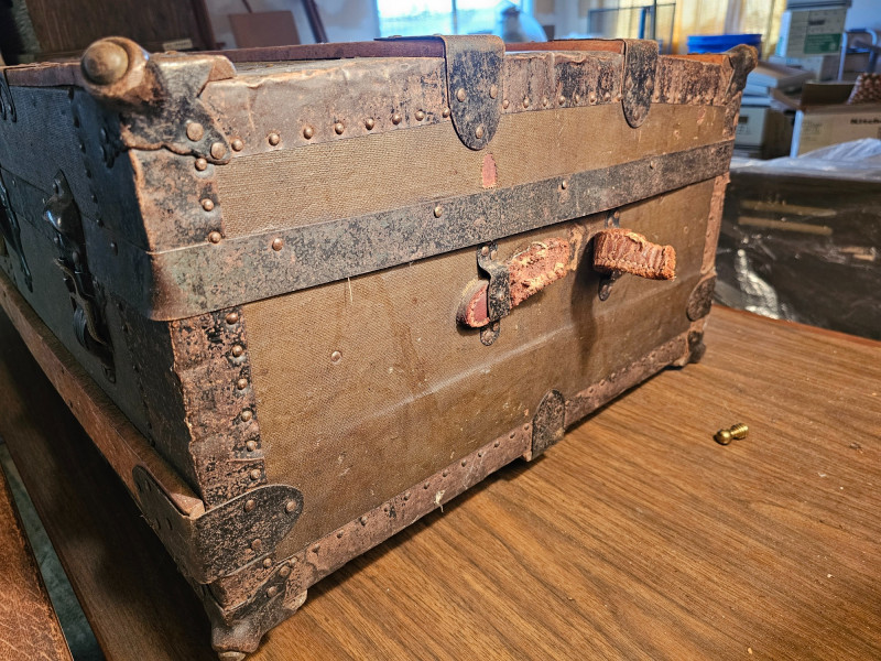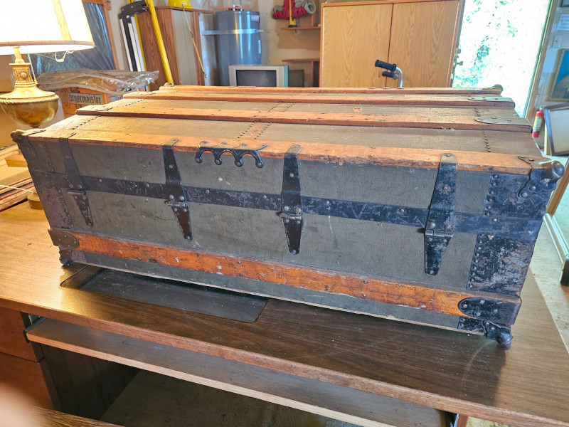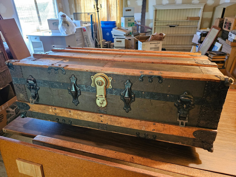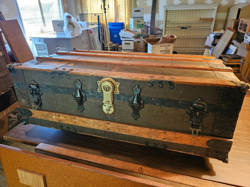 Lot # 179 - Ornate Antique P & S Flat-Top Steamer Trunk