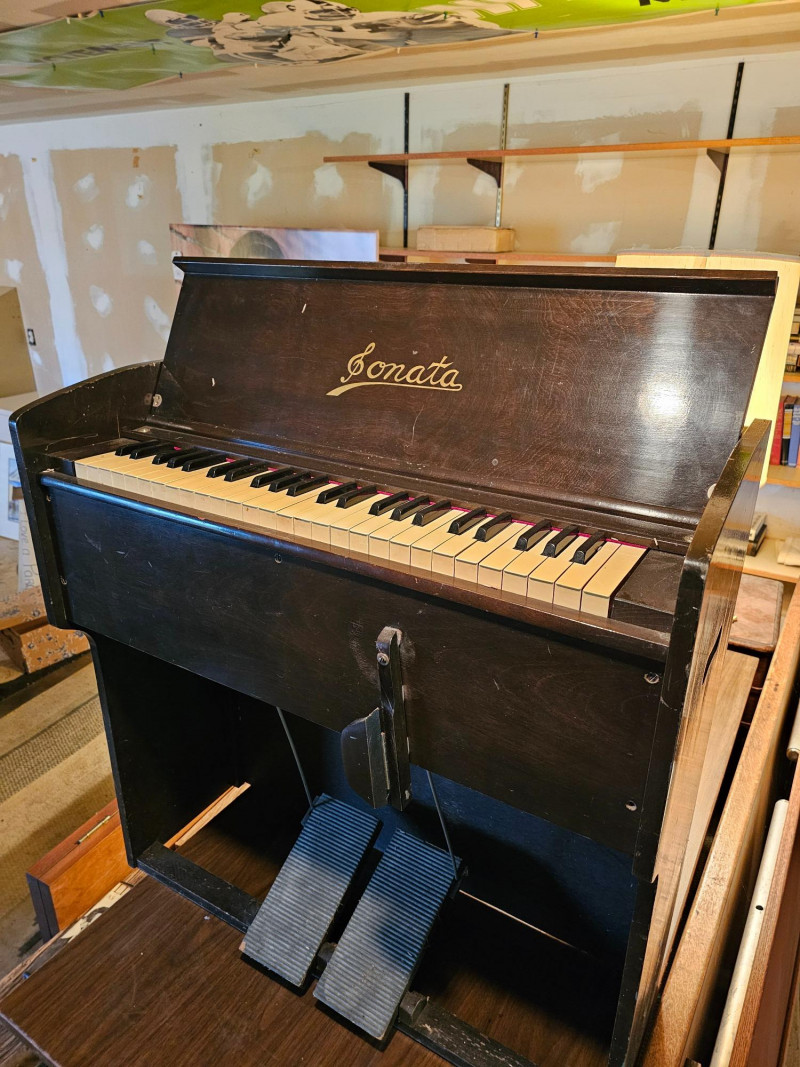 Sonata Portable Pump Organ Sonata portable pump organ, also known as a reed organ or harmonium. These instruments produce sound by using foot pedals to pump air over free reeds Very lightweight and portable Tested - Works! 32"T x 31.5"W x 13.5"D