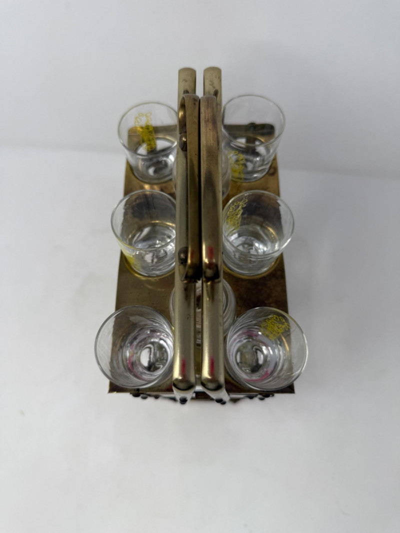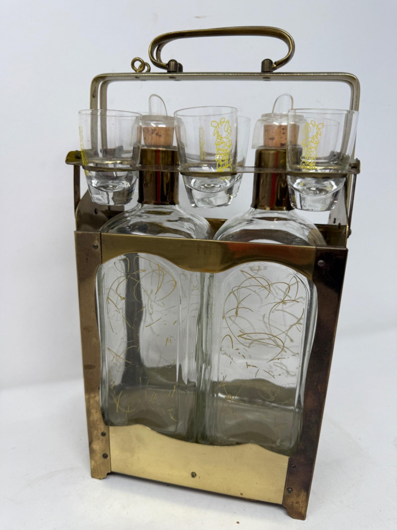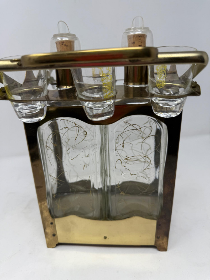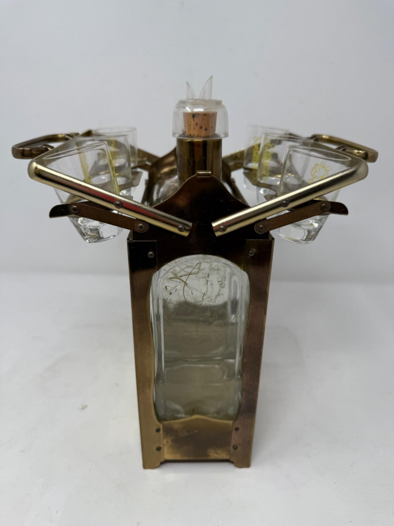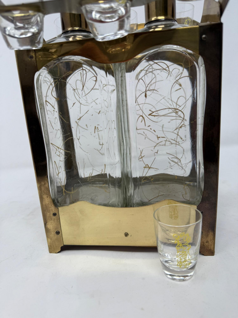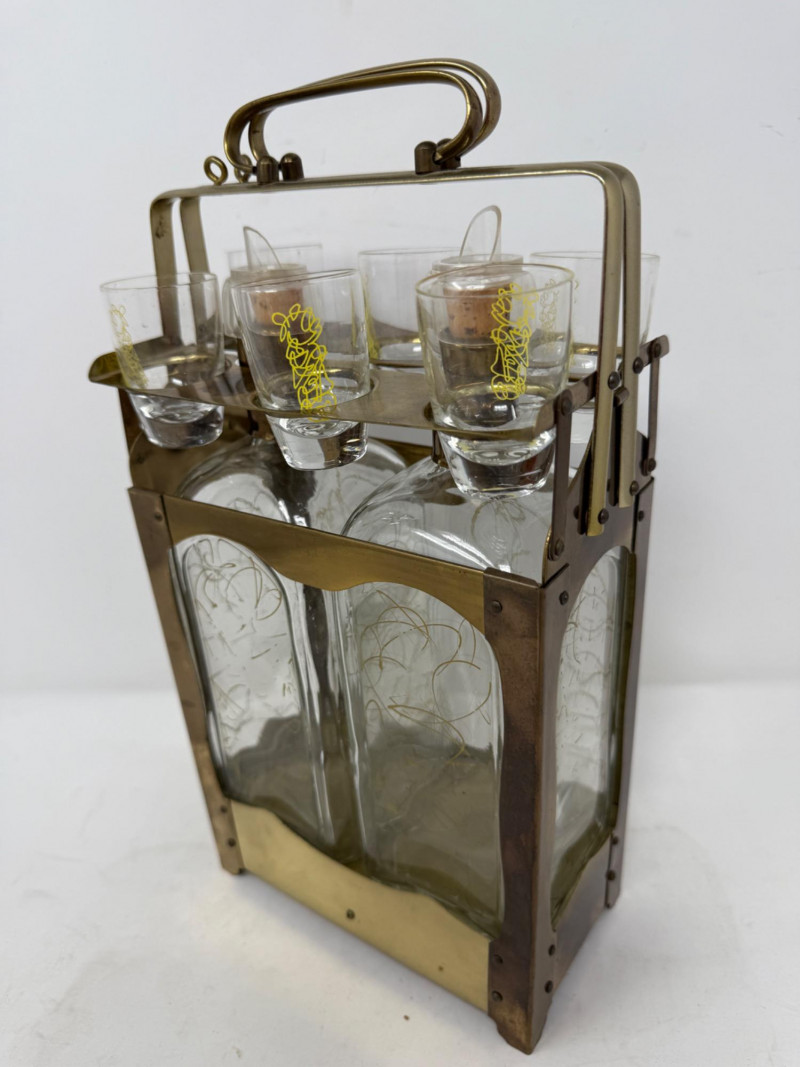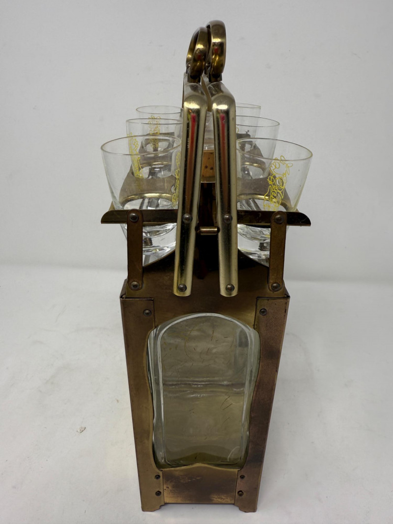 Lot # 198 - Brass and Glass Double Decanter & 6 Glass Set