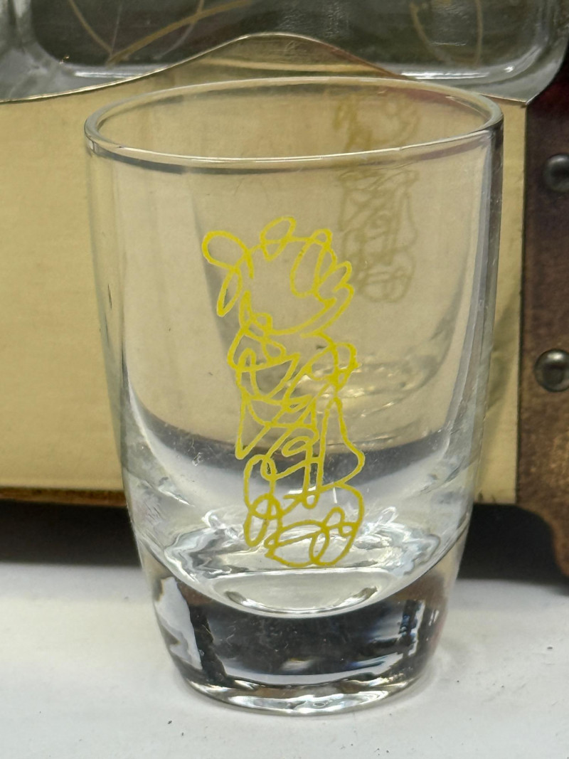 Musical Brass and Glass Double Decanter & 6 Glass Set Plays “How Dry I Am” and measures 6.5x3.5x12.5”