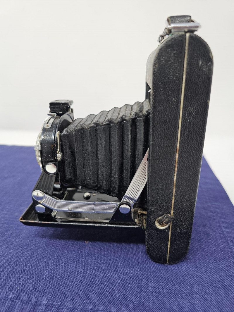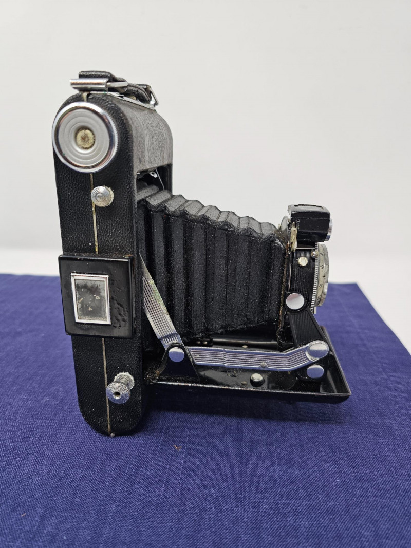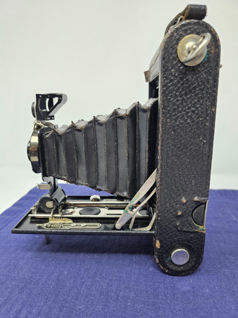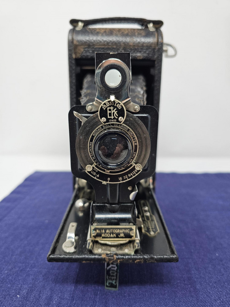 Antique Kodak Folding Cameras 1914-1926 Eastman Kodak No. 1A Autographic Kodak Jr. Follding Camera The No. 1A Autographic Kodak Jr. was a popular model known for its compact size and ease of use. It used 116 film and produced postcard-size negatives. The camera's folding design made it convenient for travel, and its relatively simple controls made it appealing to amateur photographers. These cameras are now sought after by collectors of vintage photographic equipment. 1930-1940 Kodak Vigilant Six-20 folding camera It was a folding camera that used 620 film, a format that Kodak introduced in 1932. The camera was designed to be relatively compact and easy to use, making it popular among amateur photographers of the time. Includes carrying case!