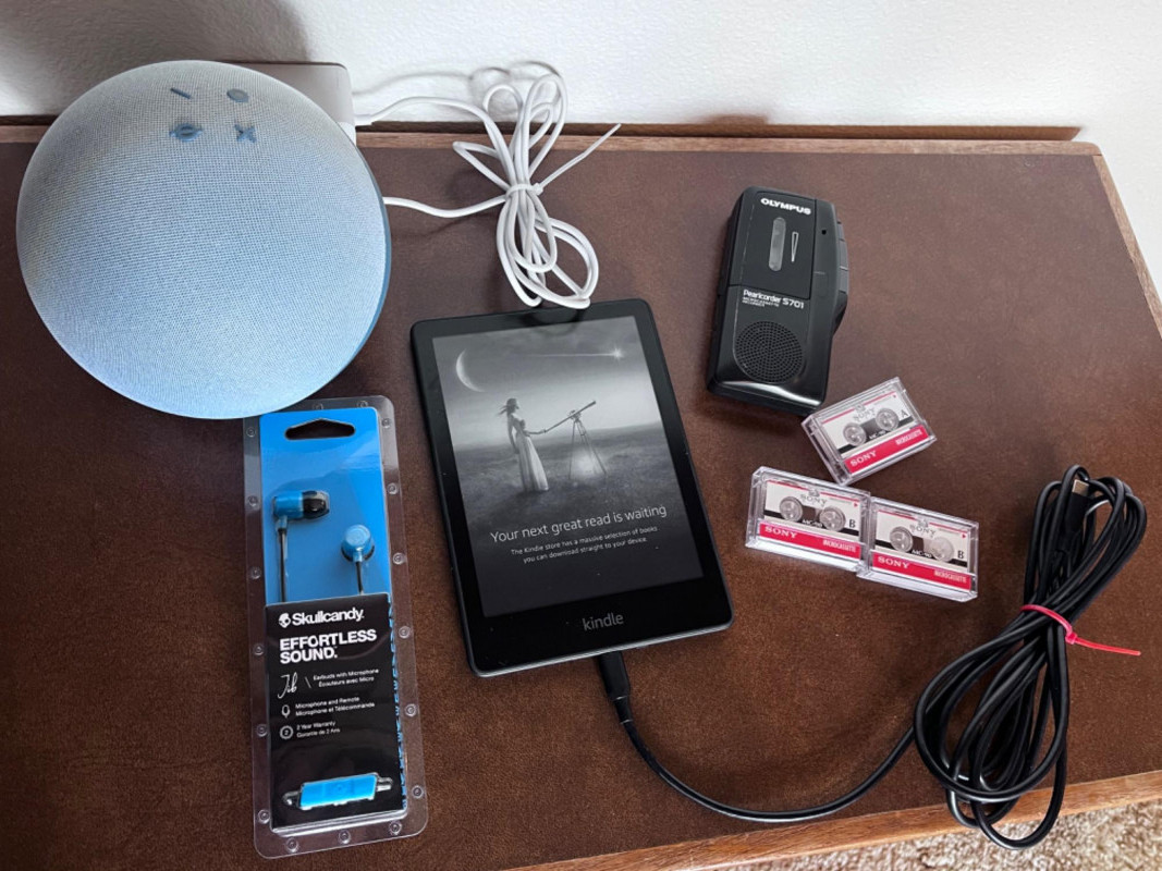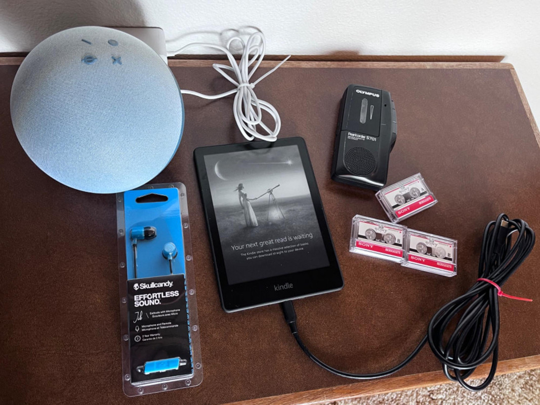 Kindle, Alexa, Tape Recorder Misc. 11th generation Kindle reader. Some visible scratches on the back of and some minor scratches on screen. Tested: Works Amazon Alexa. Tested: Works Skullcandy earbuds NIP Olympus Pearlcorder S701 microcassette recorder. Tested: Works 3 mini cassette tapes never used