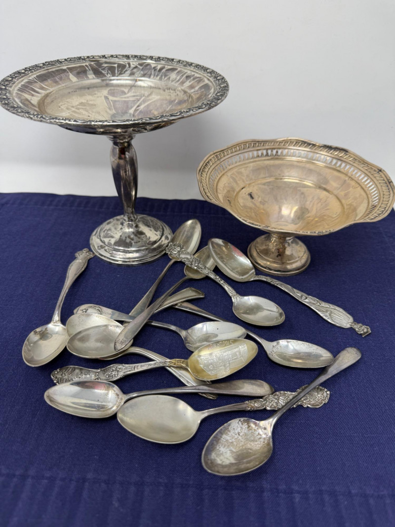 Lot # 223 - Sterling Silver Spoons and Weighted Pedestal Bowls