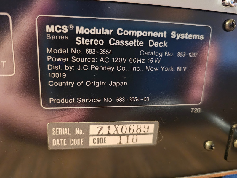Vintage MCS 3554 Stereo Cassette Deck MCS #683-3554 Manufactured 1981 Part of the Modular Component Systems lineup sold through J.C. Penney catalogs Vintage audio component for your retro music setup! Tested - Powers On! 4.5"T x 17"W x 8.5"D