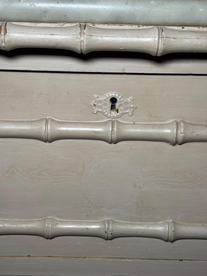 Lot # 230 - Antique French Louis XIV Bamboo and Marble Top Commode