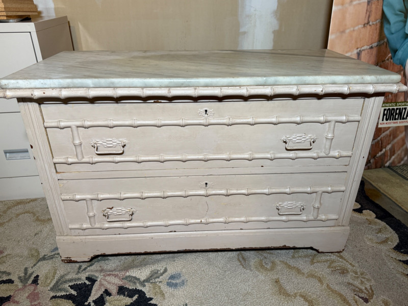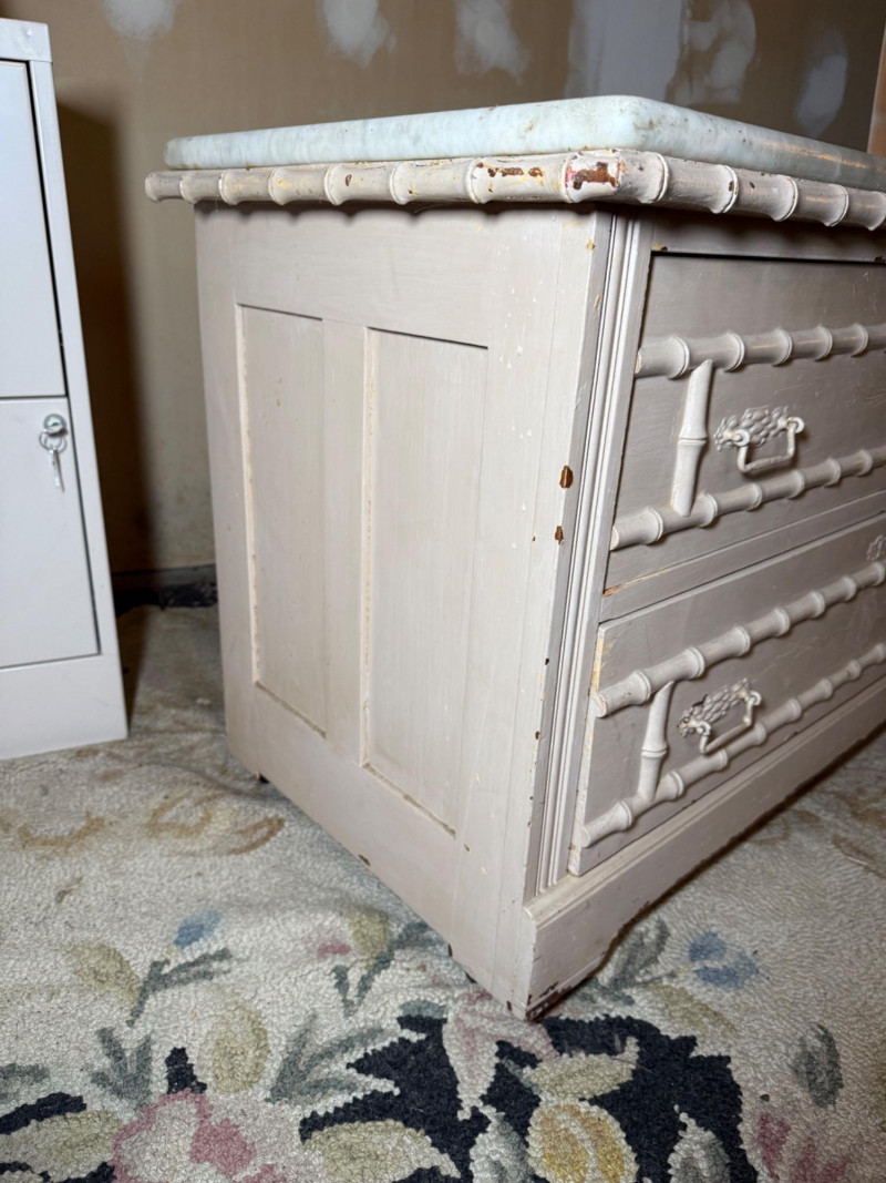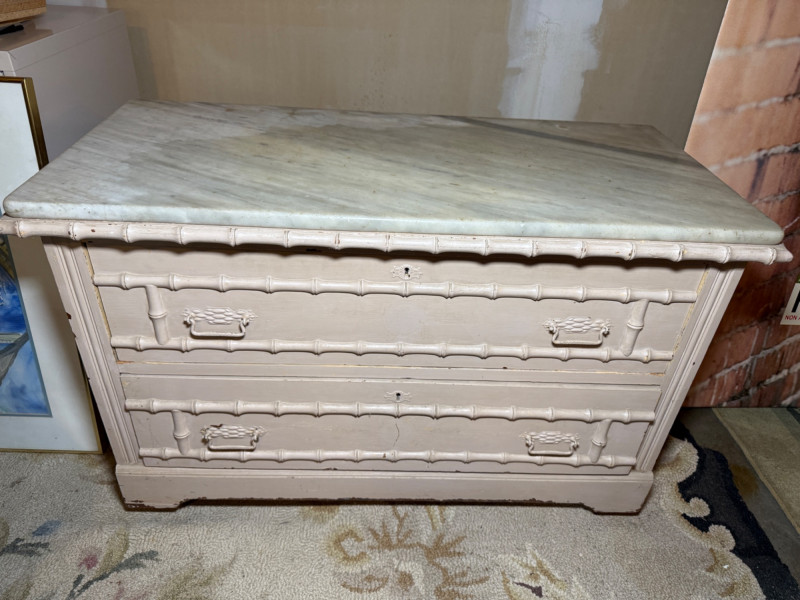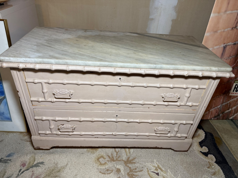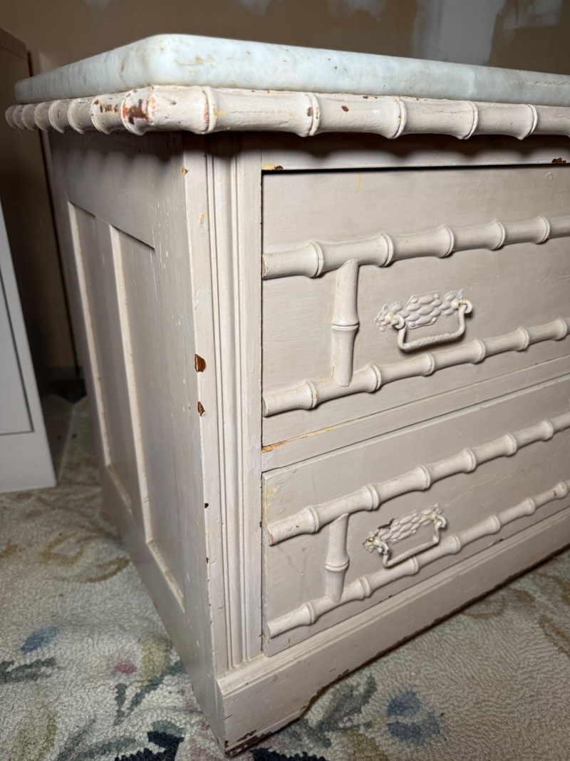 Antique French Louis XIV Bamboo and Marble Top Commode Measures 40x19x25”