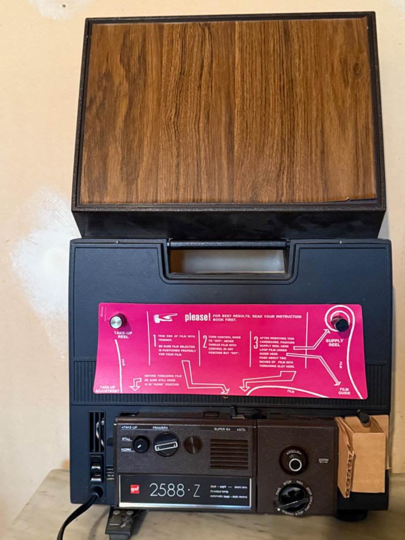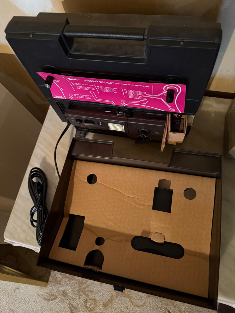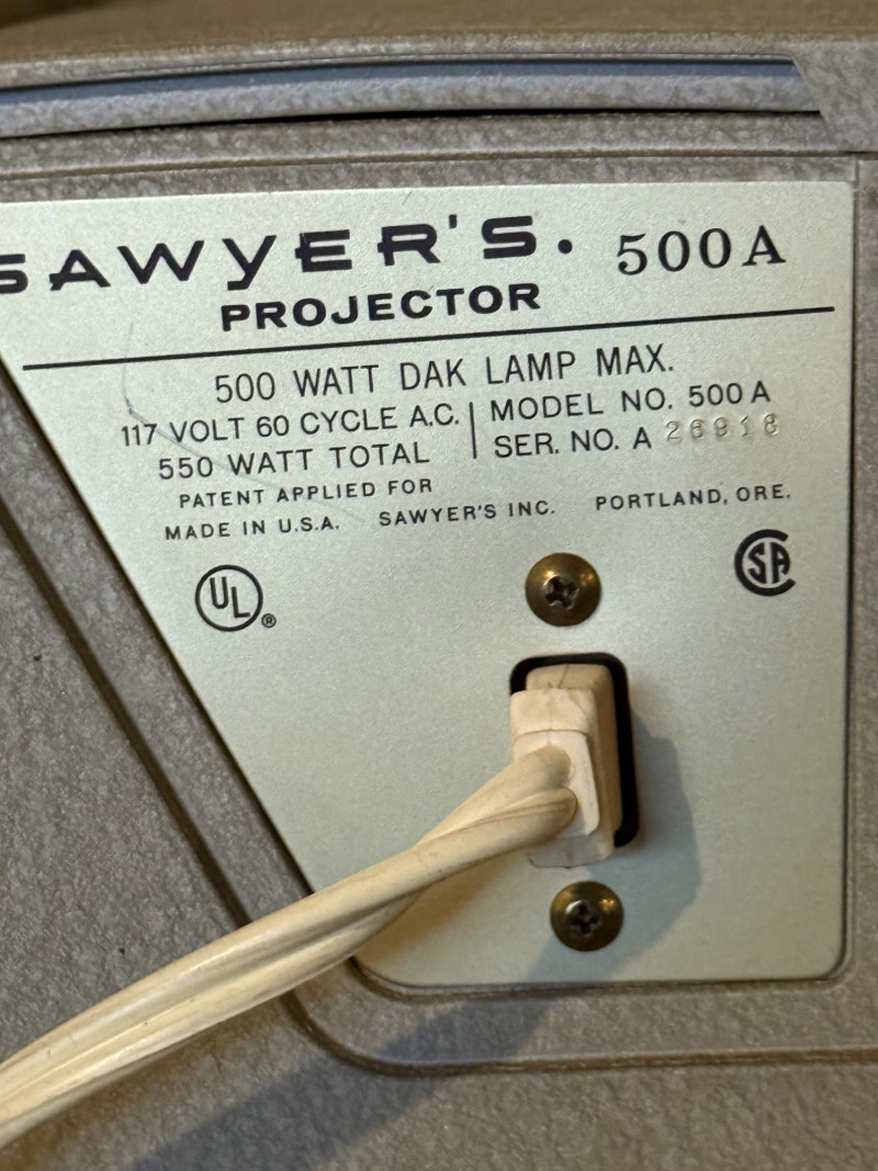 Sawyers 500A Slide projector, works gaf 2588-Z New, appears never used 8mm projector. Not tested.