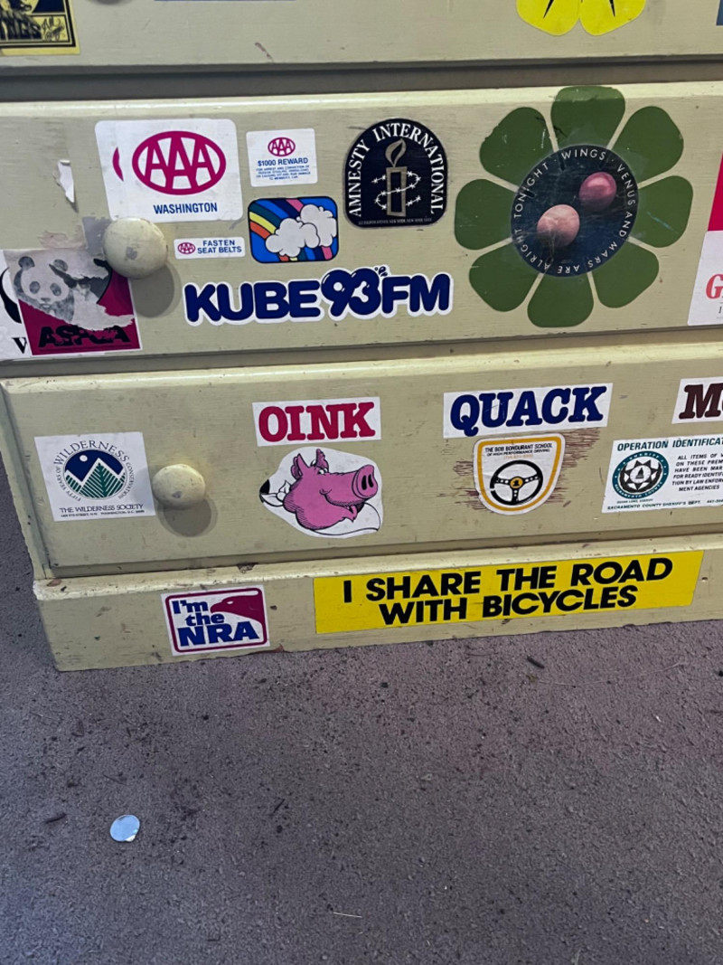 Lot # 240 - 5 Drawer Wood Dresser Covered in Vintage Stickers