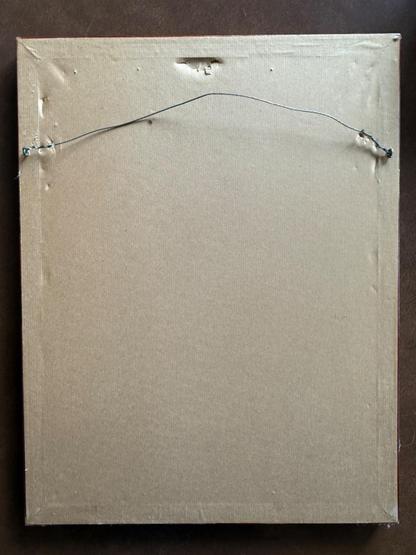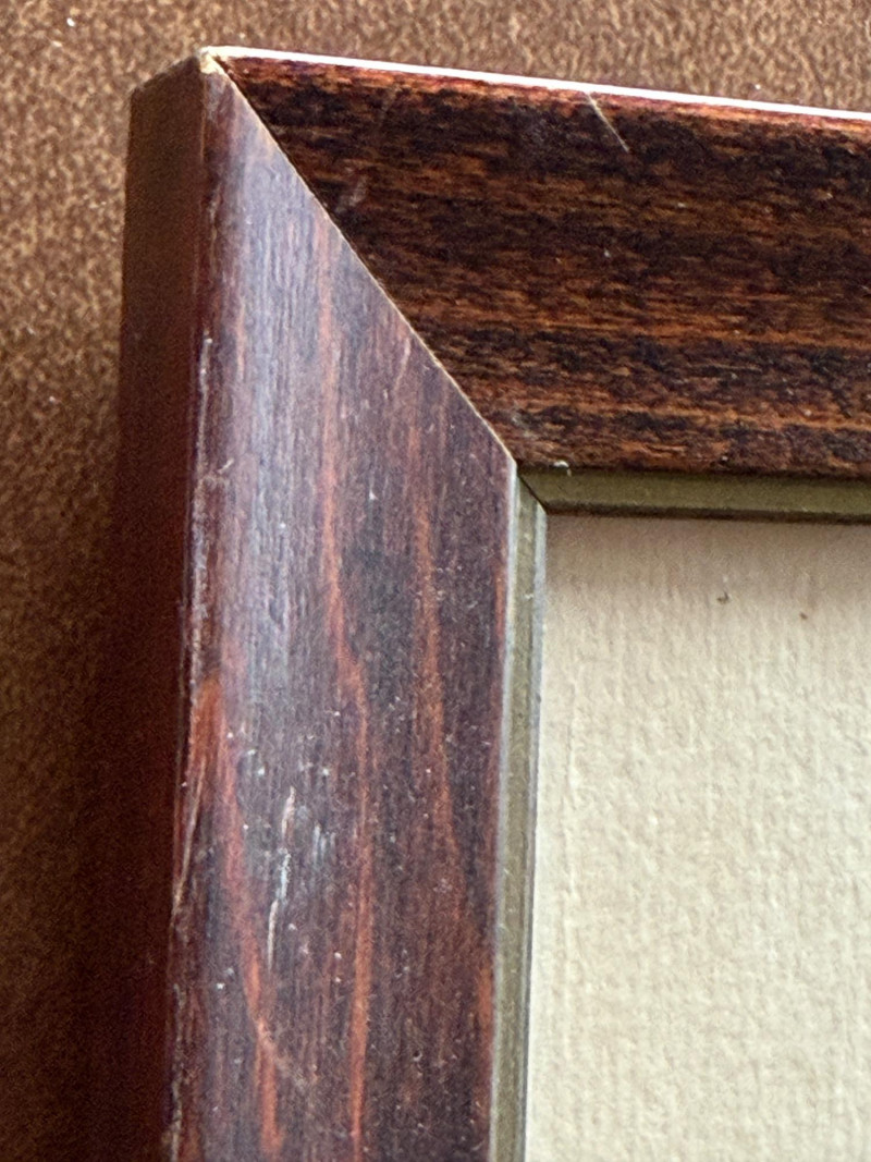 Framed under glass in wood frame measures 13x16.5”