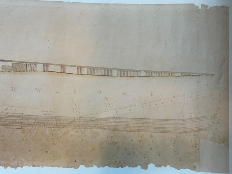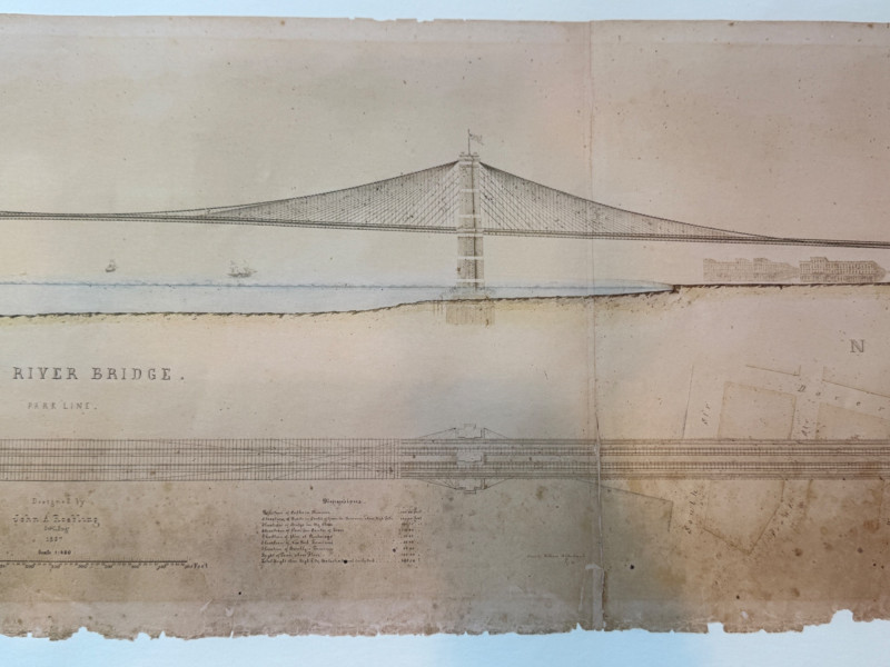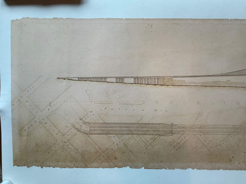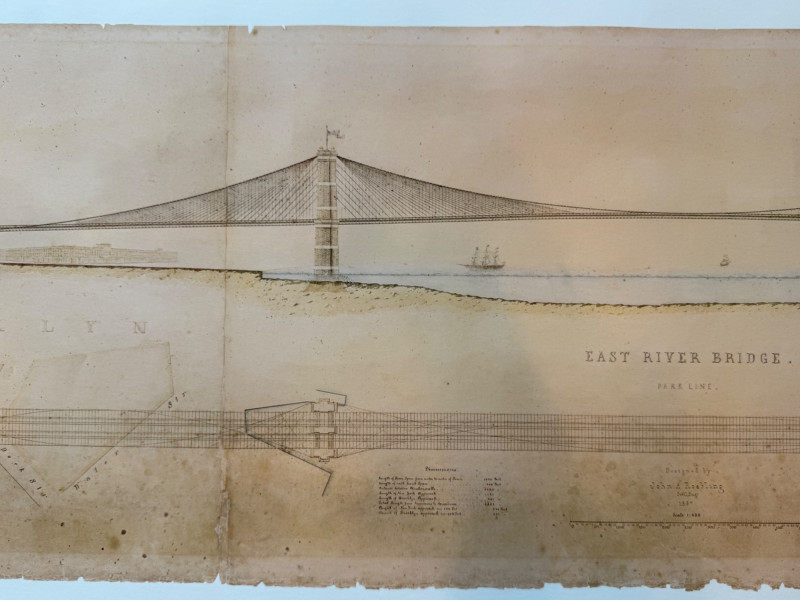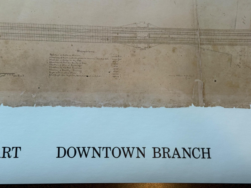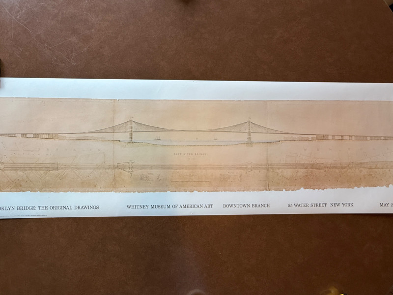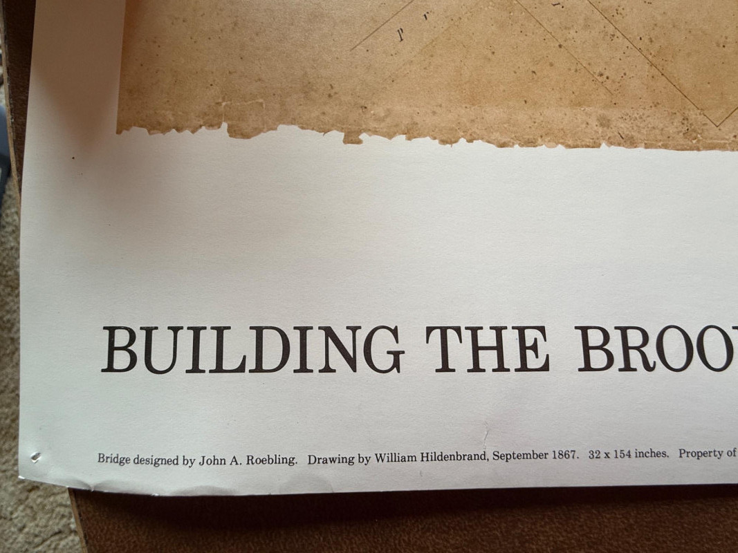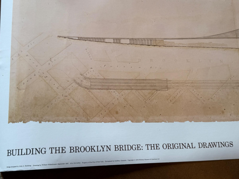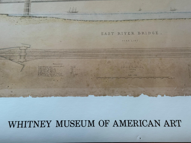 “Building The Brooklyn Bridge” Large Format Print Drawing by William Hildenbrand Sept 1867 1976 Whitney Museum of American Art 16.5x60” Unframed