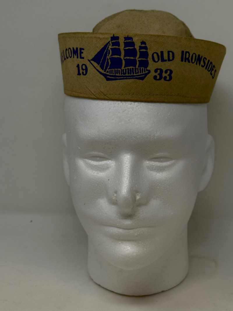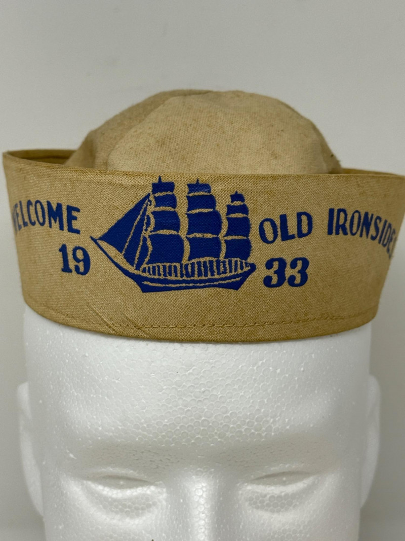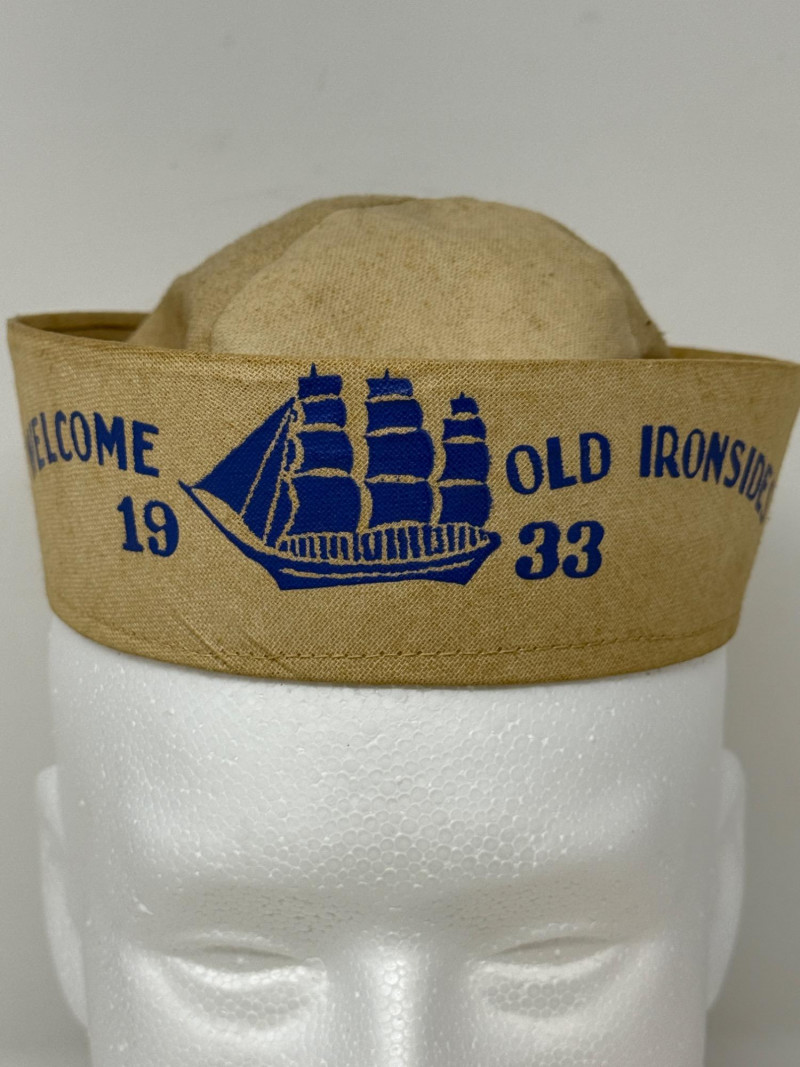 Souvenir 1933 Welcome Old Ironsides Dixie Cup Sailor Hat. Canvas with patina.