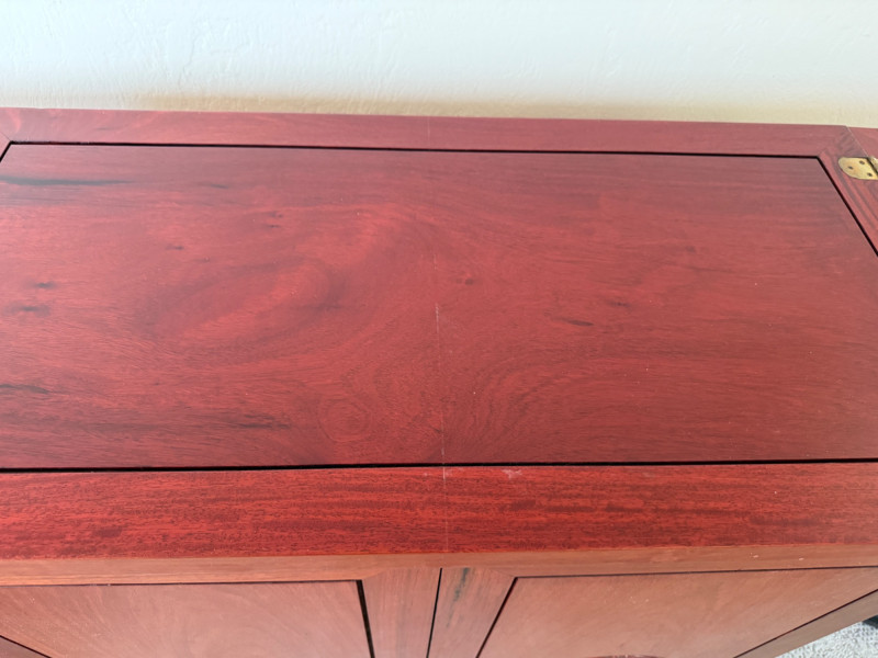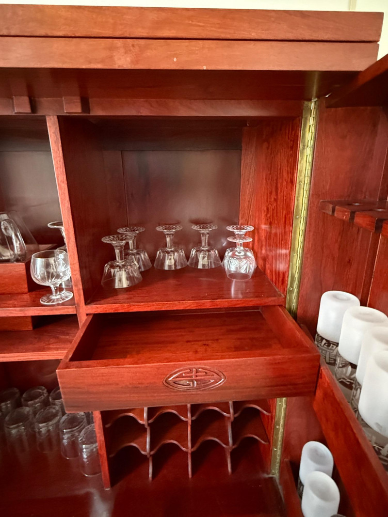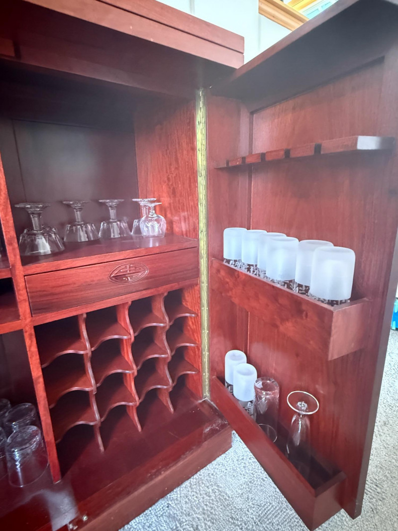 Lot # 6 - Rosewood Expanding Top Bar Storage Cabinet & Glasses