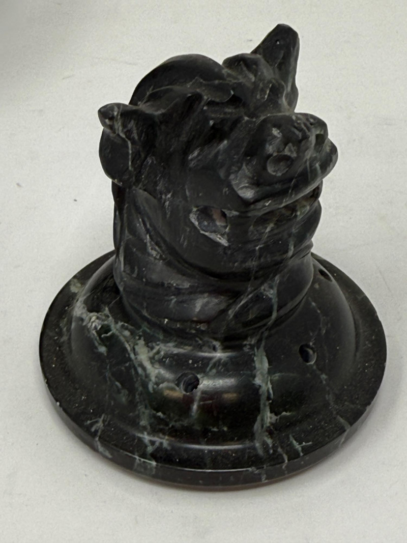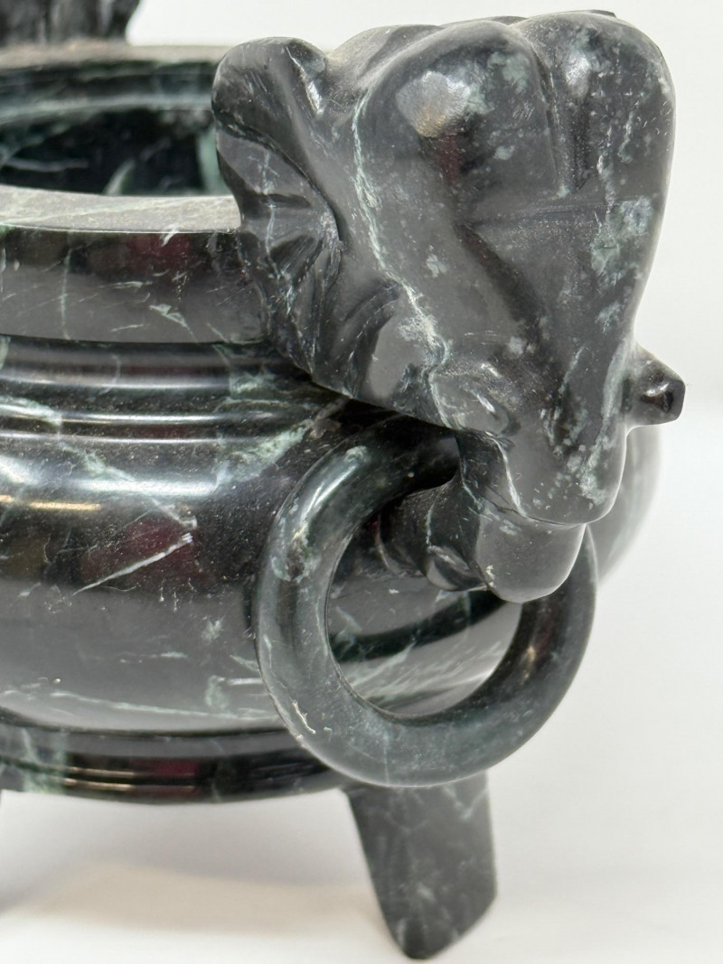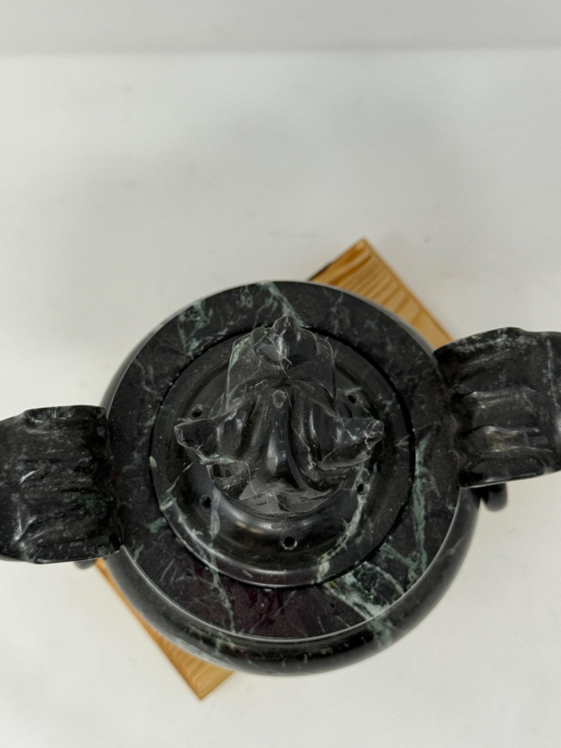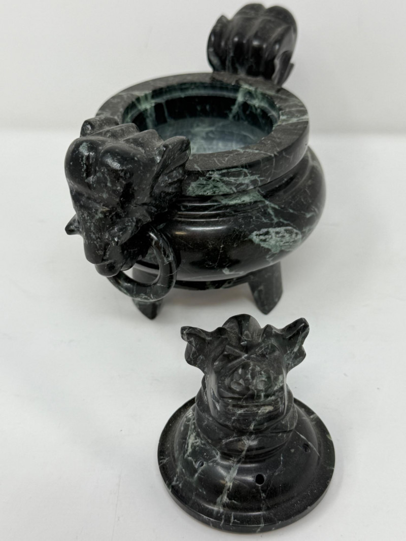 Black marble censer with Foo Dog lid incense burner. Elephant handles with rings.