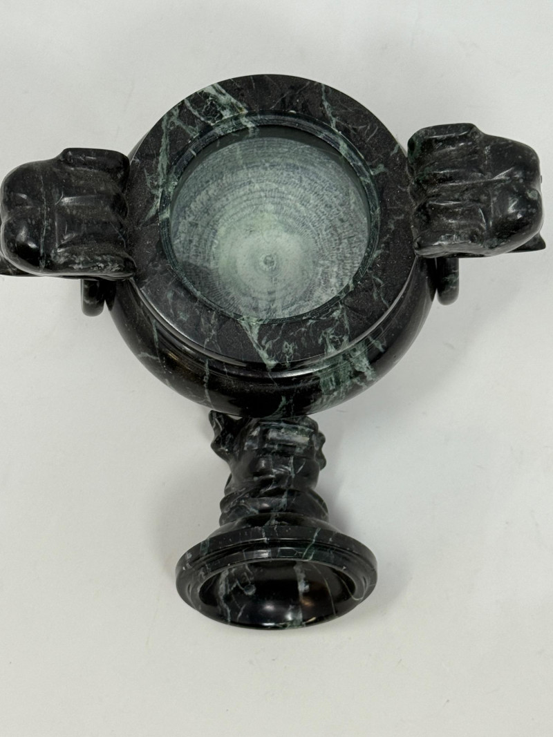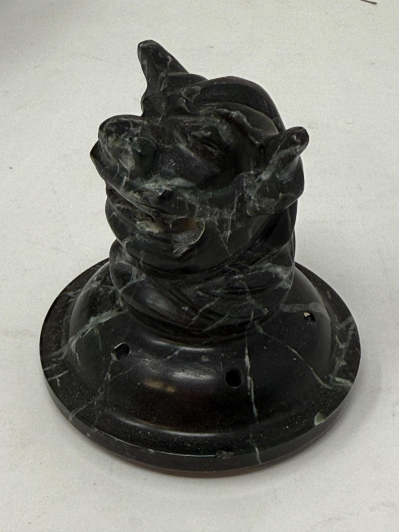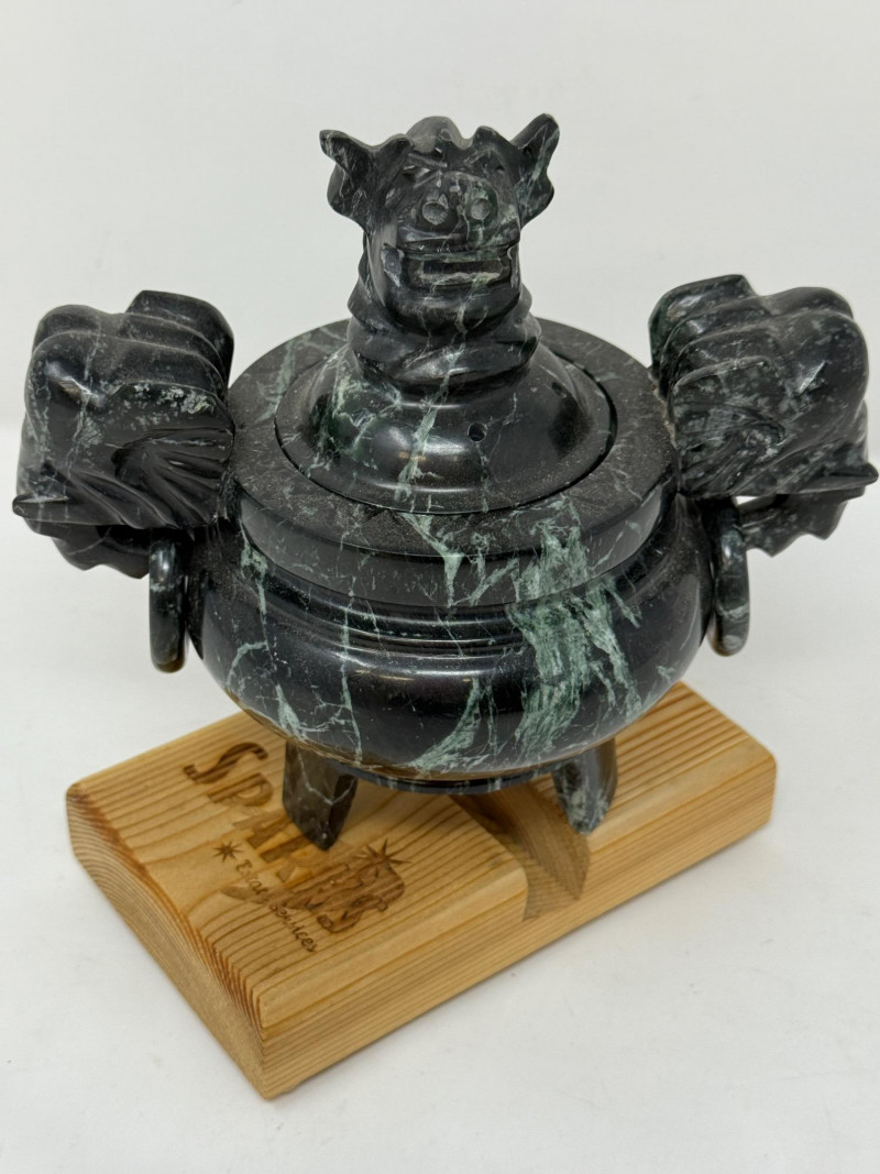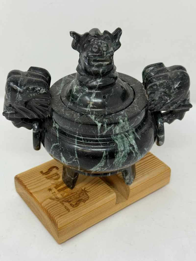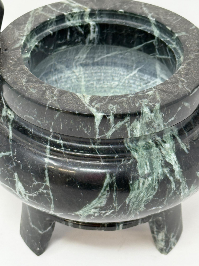 Black marble censer with Foo Dog lid incense burner. Elephant handles with rings.