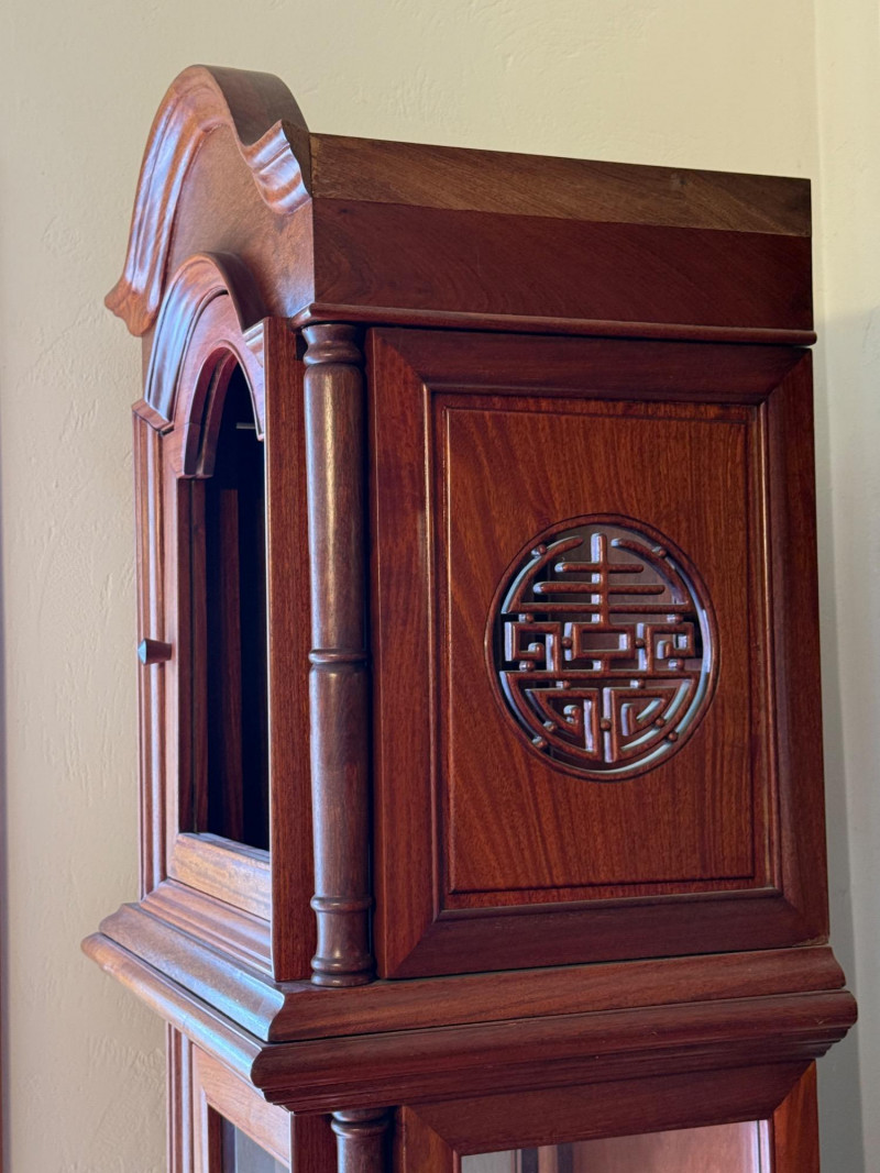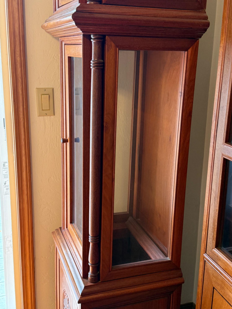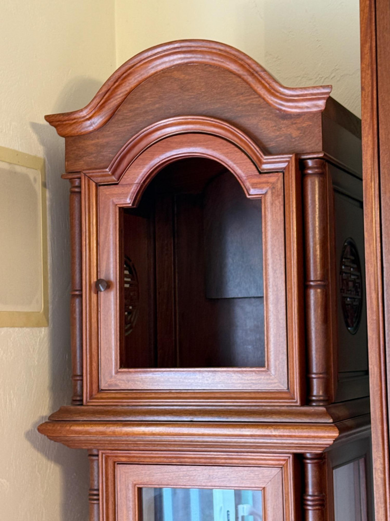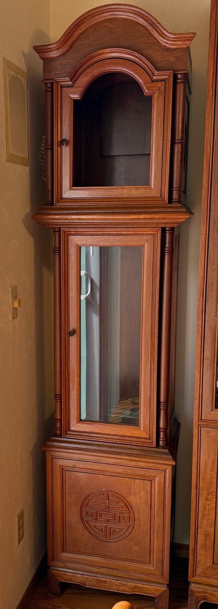 Rose Wood 3 Piece Clock Cabinet 3 sections to this Clock Tower Cabinet. Cabinet only. 19x82x14.75”