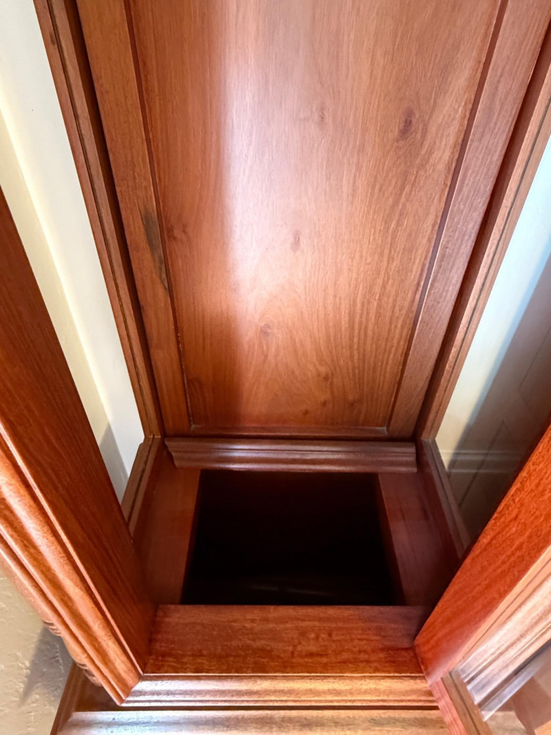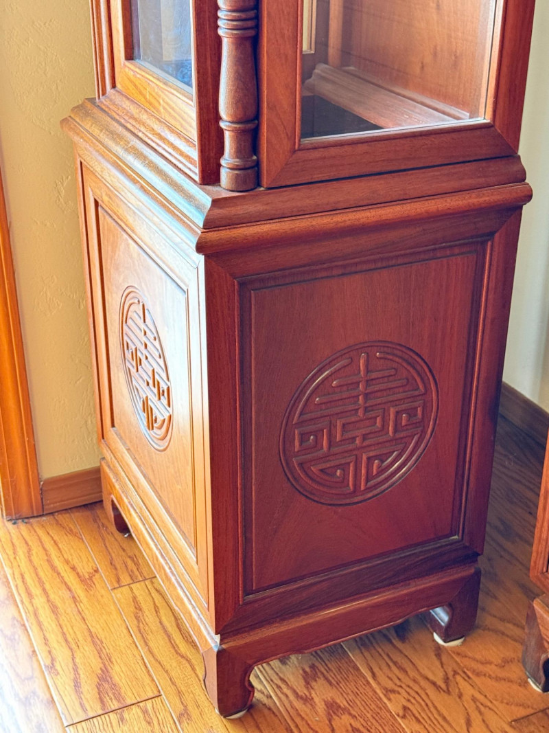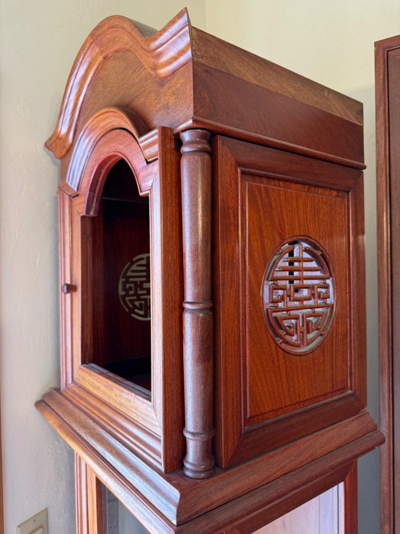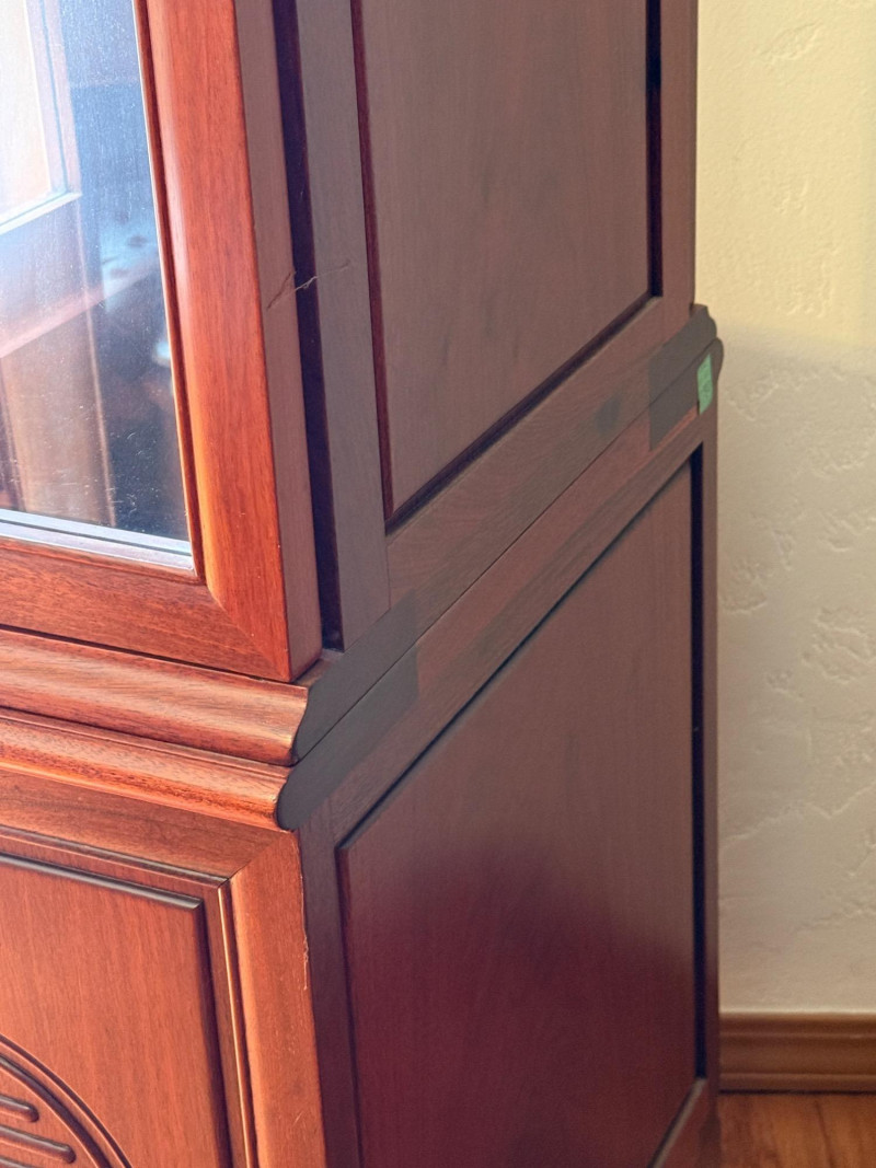 Rose Wood 3 Piece Clock Cabinet 3 sections to this Clock Tower Cabinet. Cabinet only. 19x82x14.75”