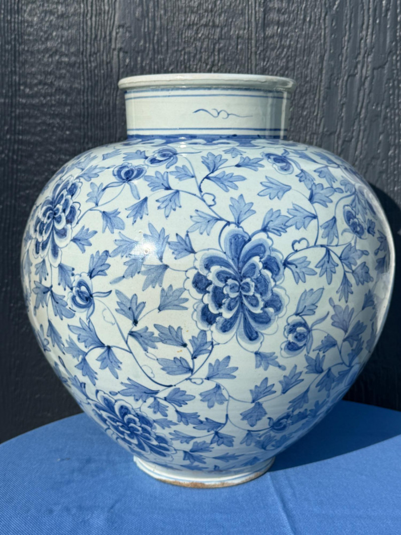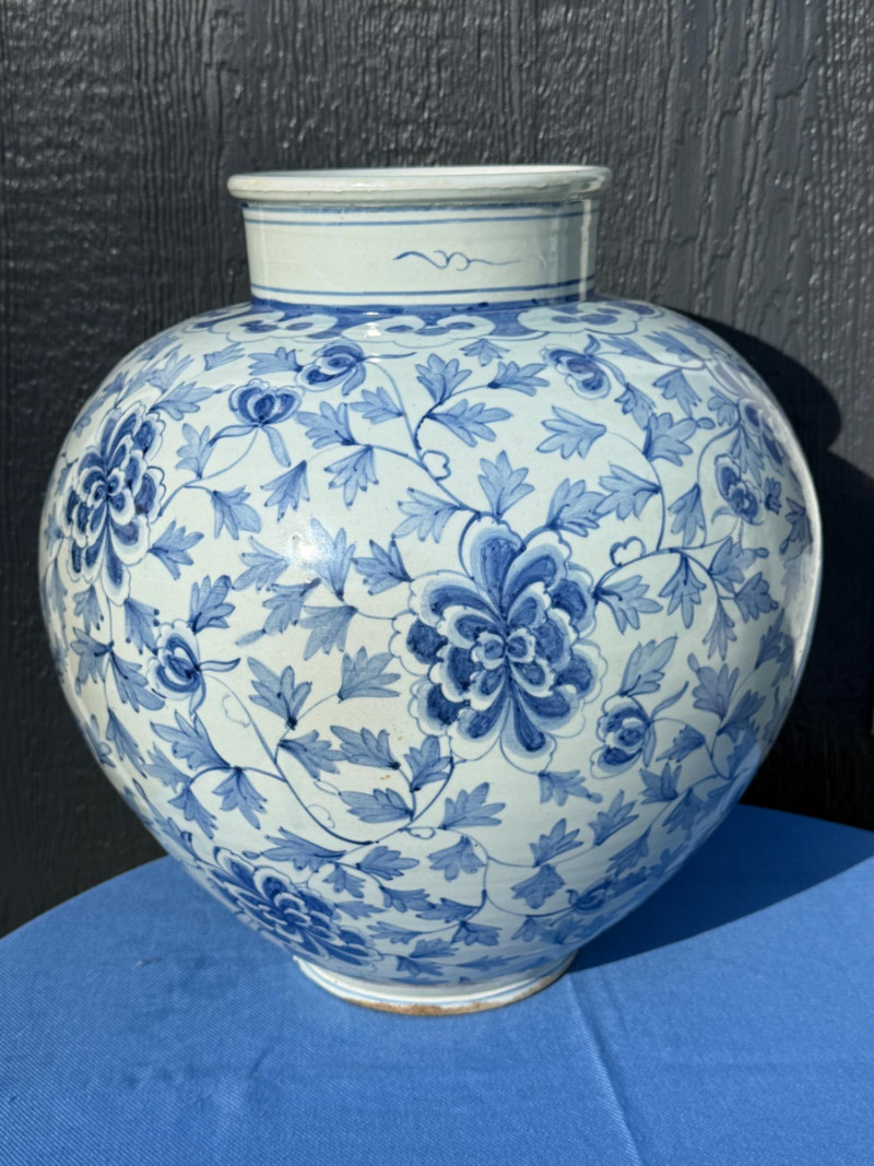 Lot # 31 - Blue and White Chinese Floor Vase or Centerpiece