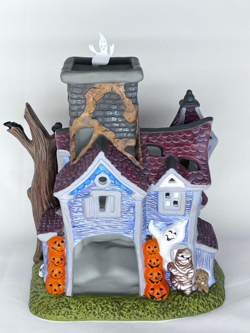 PartyLite Ghostly Tealight House, Rose Tealight Lamp, and Candles (1) PartyLite Ghostly Tealight House 8.5”Lx6.5”Wx6”D (1) Rose TeaLight Lamp (11) PartyLite summer peach scented tea candles