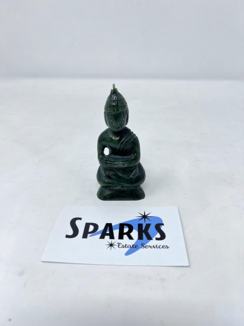 Solid Jade Sitting Buddha 3.5”Lx1”Wx1”D