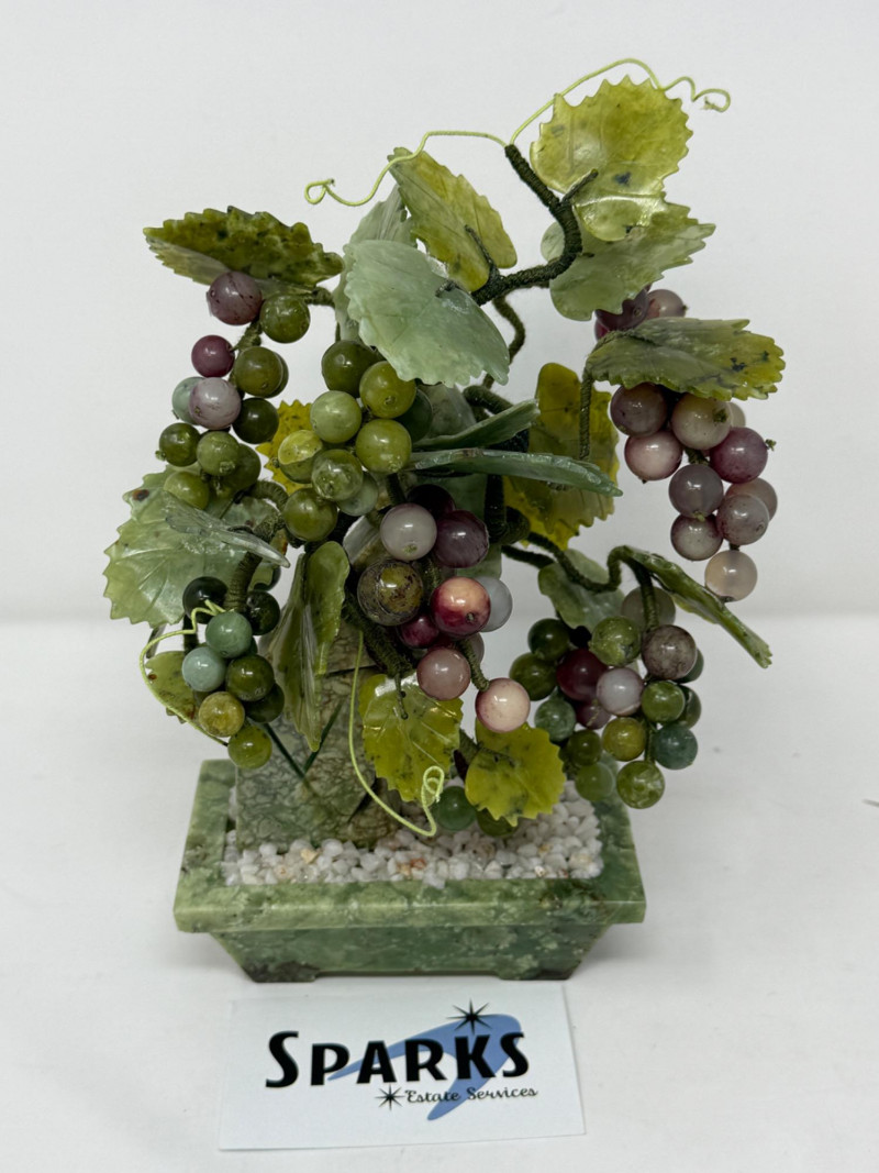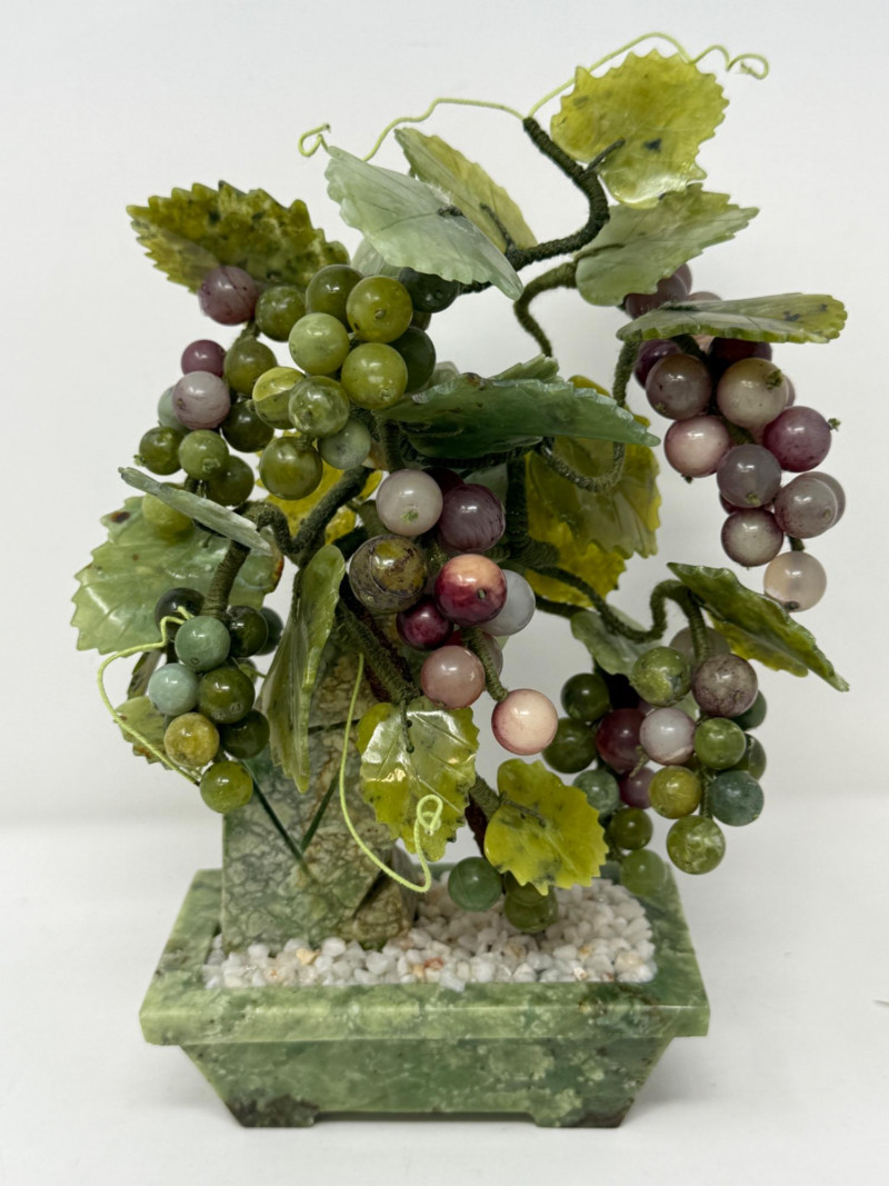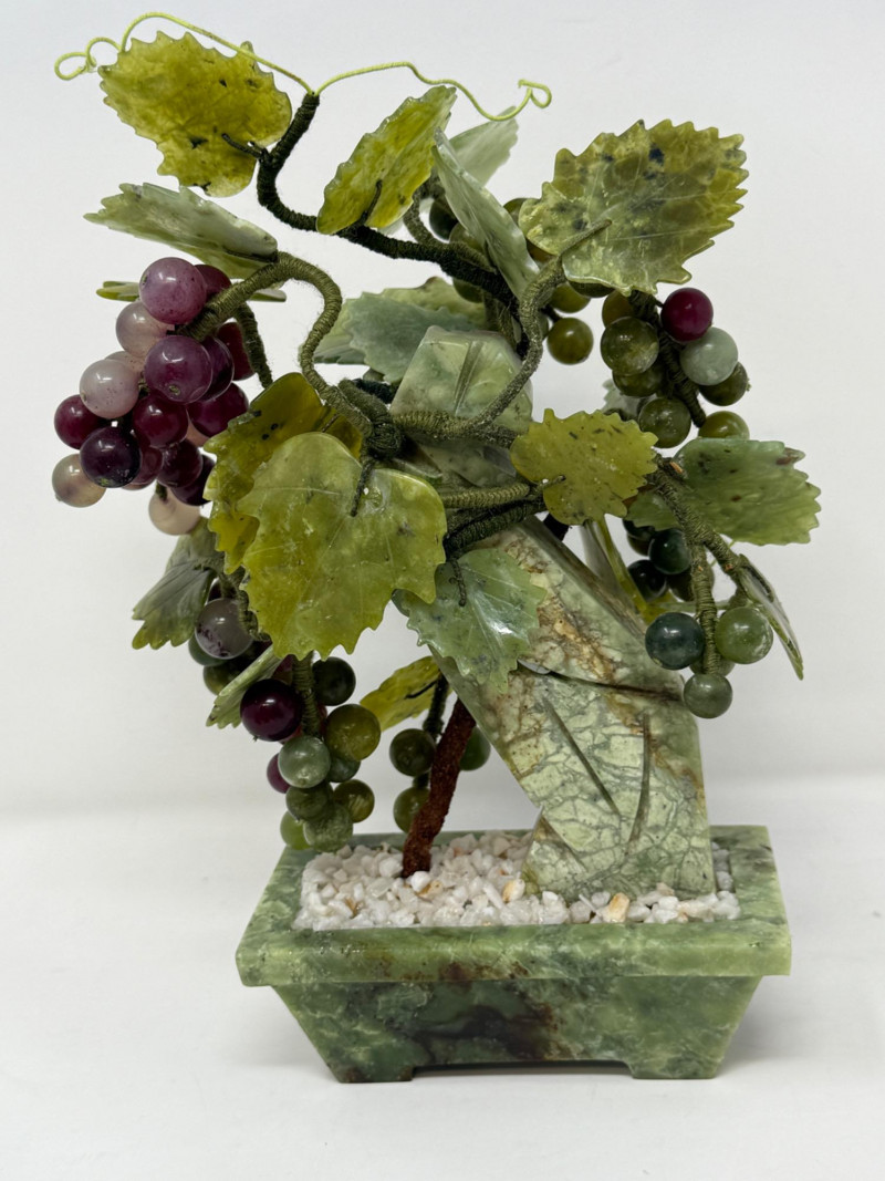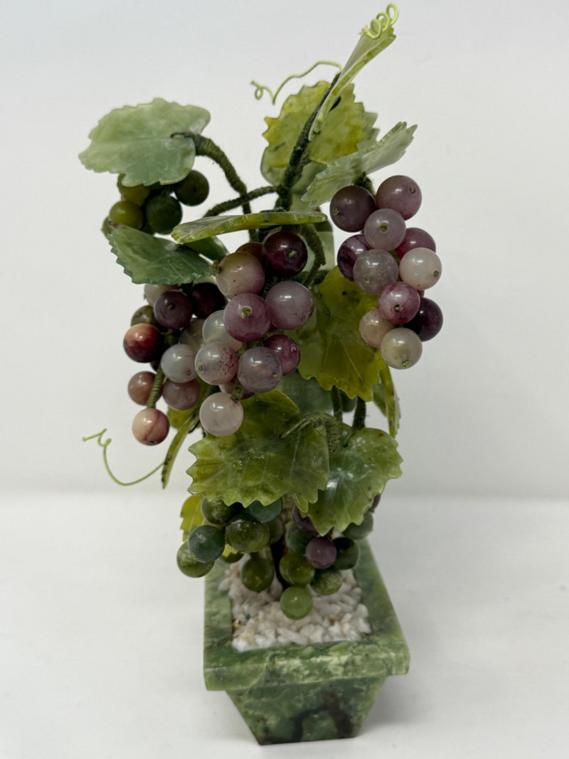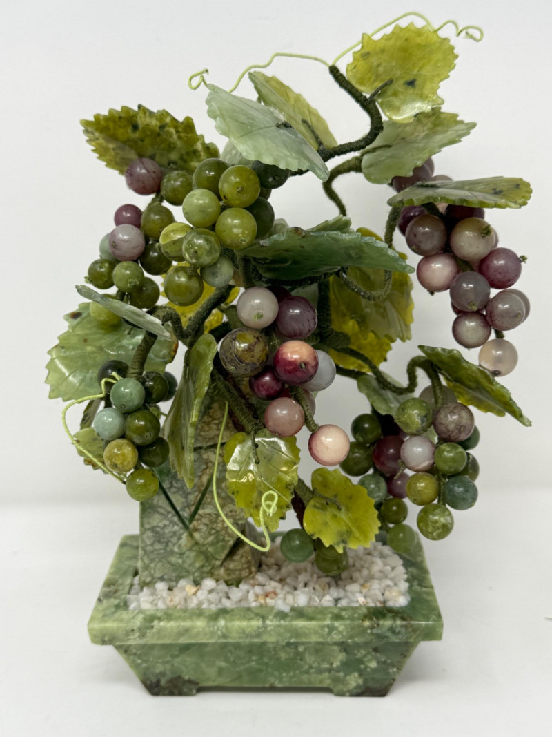 Jade and Marble Grapes & Leaves Statue 6.5x4x9.5”