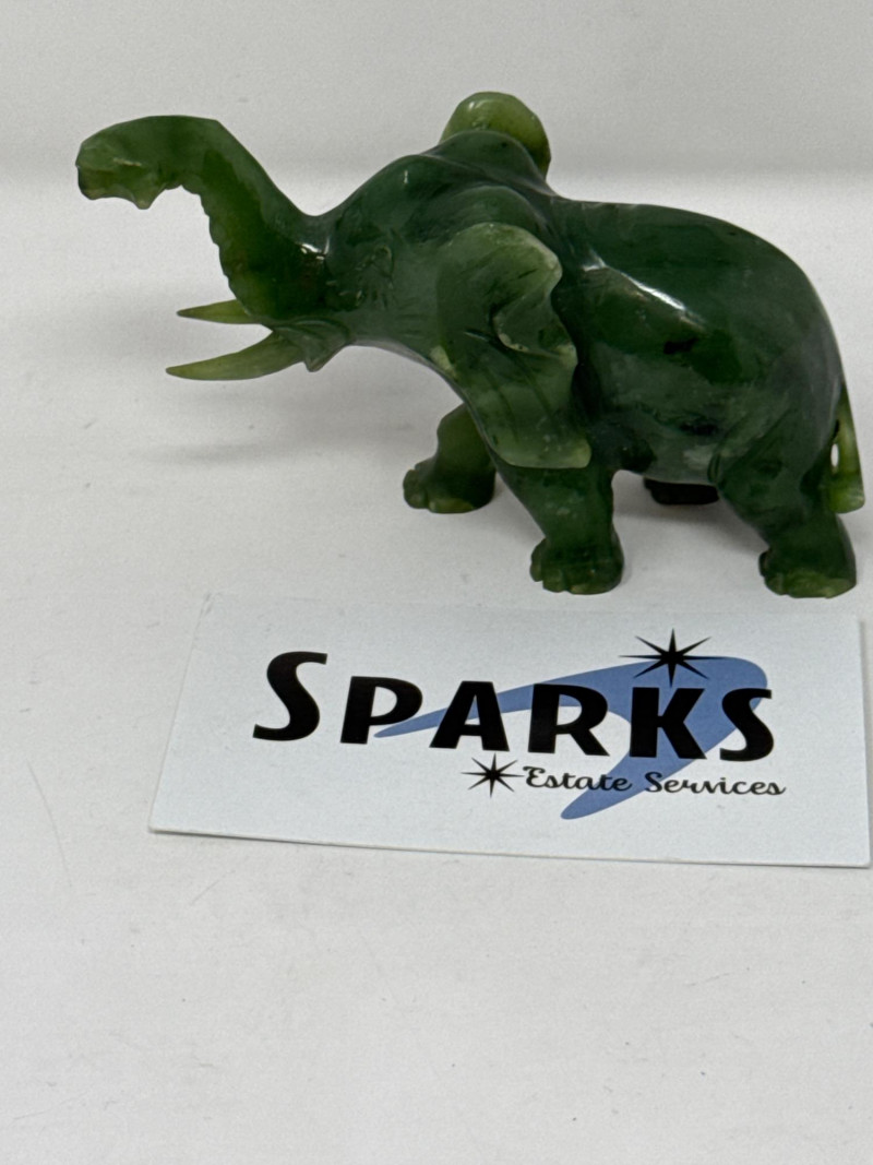 Solid Jade Carved Elephant 1.5x4x2.75”