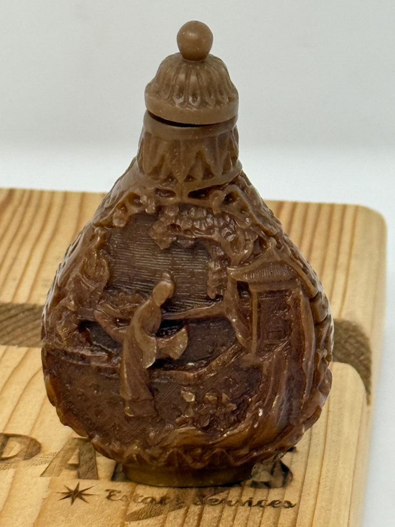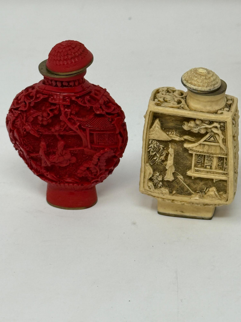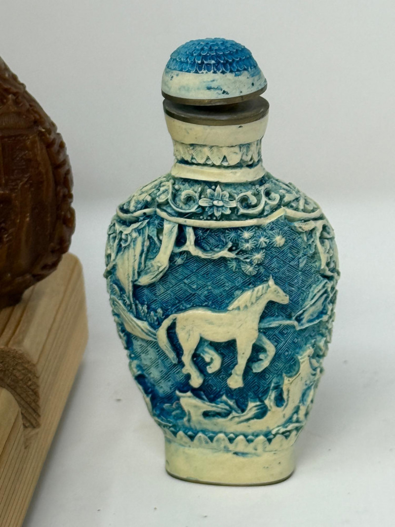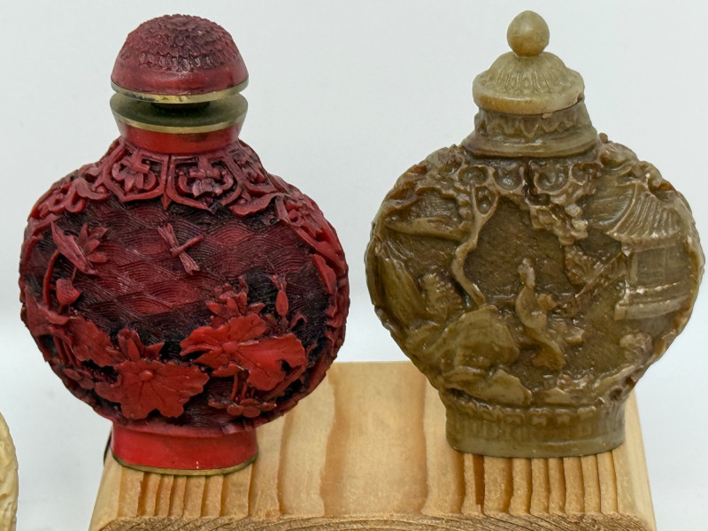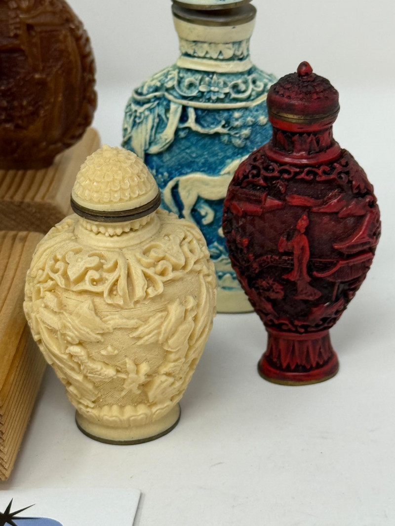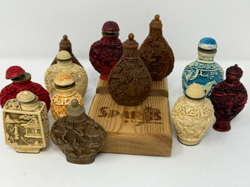 (12) Carved Snuff Bottle Collection Lacquer, stone and resin carved bottles