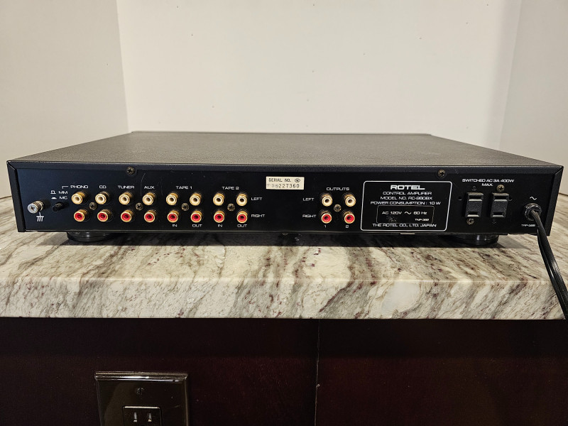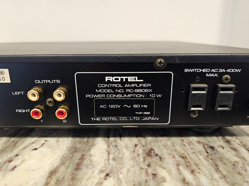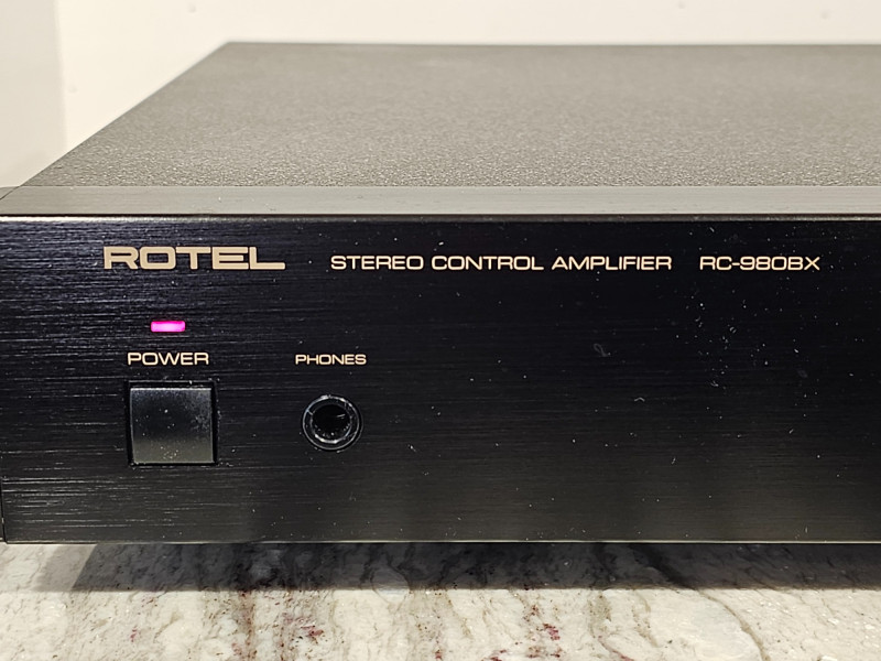 Rotel RC-980BX Stereo Control Amplifier Manufactured 1992 Preamplifier known for its transparent sound quality, versatile phono stage, and minimalist design. It was a popular and well-regarded component for its time Removed from a working home theater system Includes power cable Tested - Powers On! 3"T x 17"W x 12"D