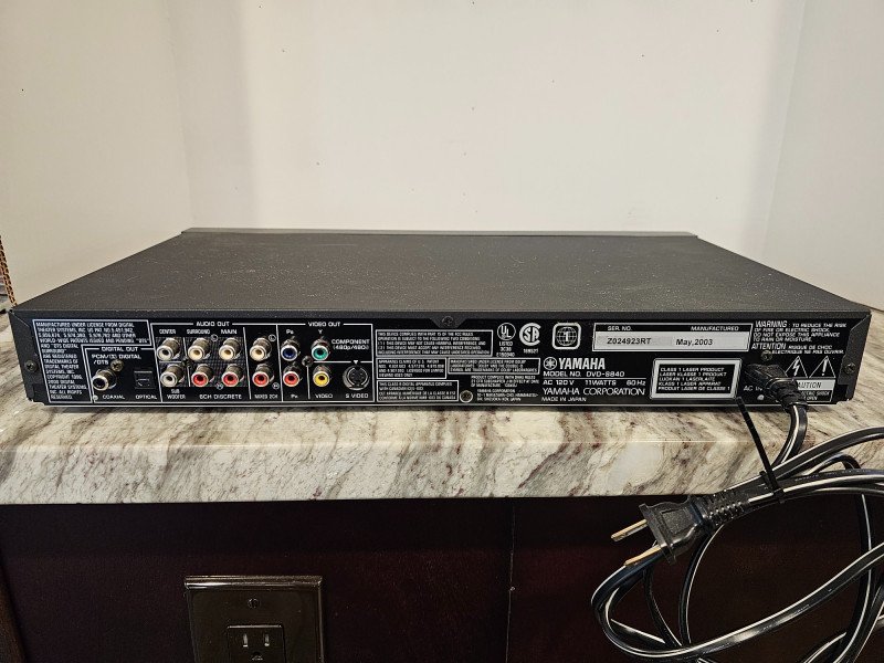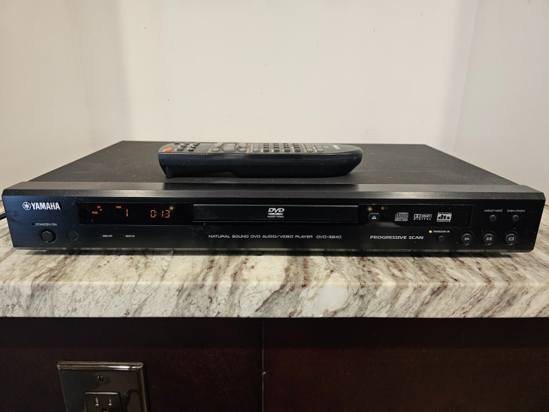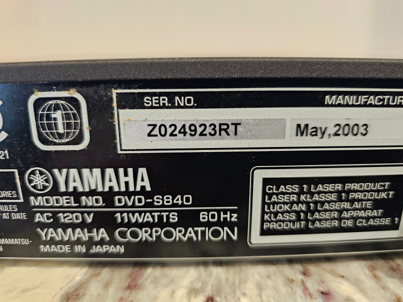 Yamaha DVD-S840 Natural Sound DVD Audio/Video Player Manufactured May 2003 The Yamaha DVD-S840 was a progressive-scan DVD-Audio/Video player, which means it could play both standard DVDs and high-resolution DVD-Audio discs Includes remote & power cable Tested - Powers On! 2.5"T x 17"W x 10"D