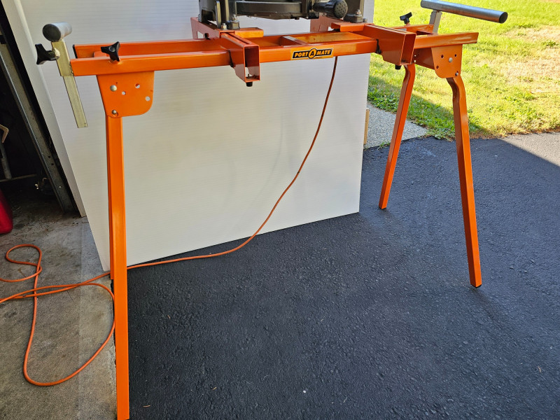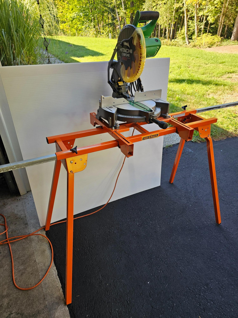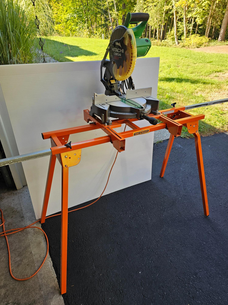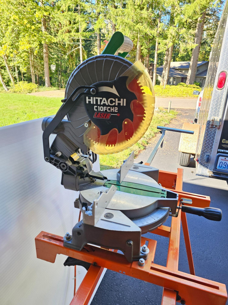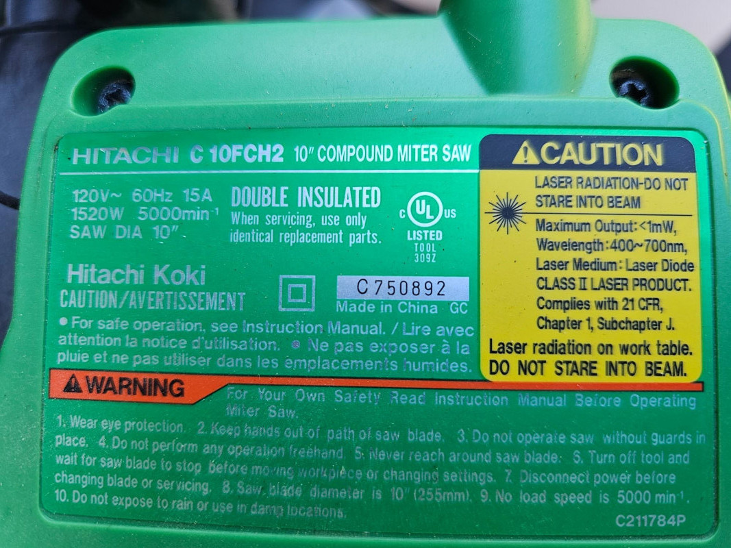 Hitachi 10" Compound Laser Miter Saw With Folding Stand Hitachi #C10FCH2 10" corded compound miter saw with laser Port -A-Mate 500lb capacity expandable & folding stand Tested - Works! Saw: 24"T x 17.5"W x 20"D Stand: 37"T x 44"W (96" expanded) x 26"D
