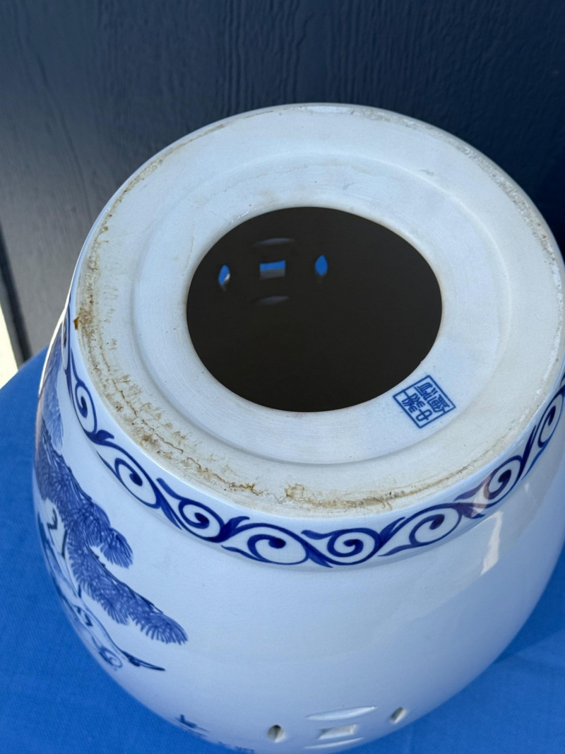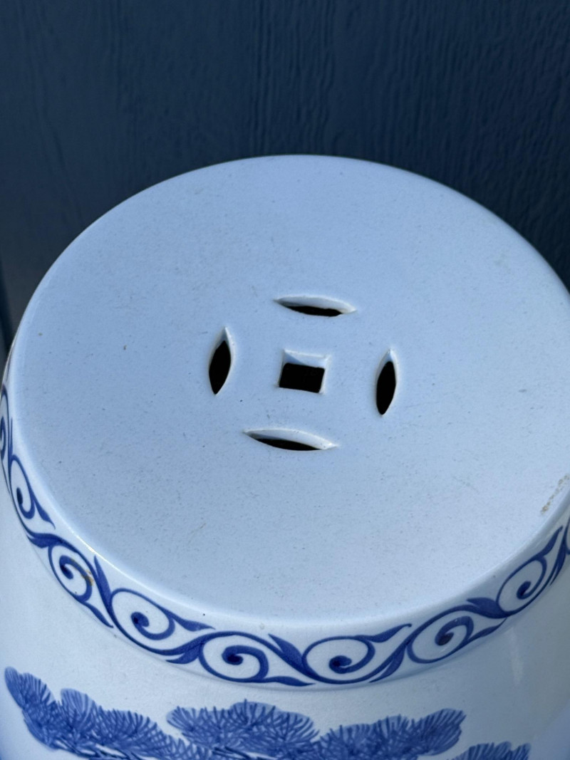 Lot # 107 - Blue and White Ceramic Hibachi, Pedestal or Stool