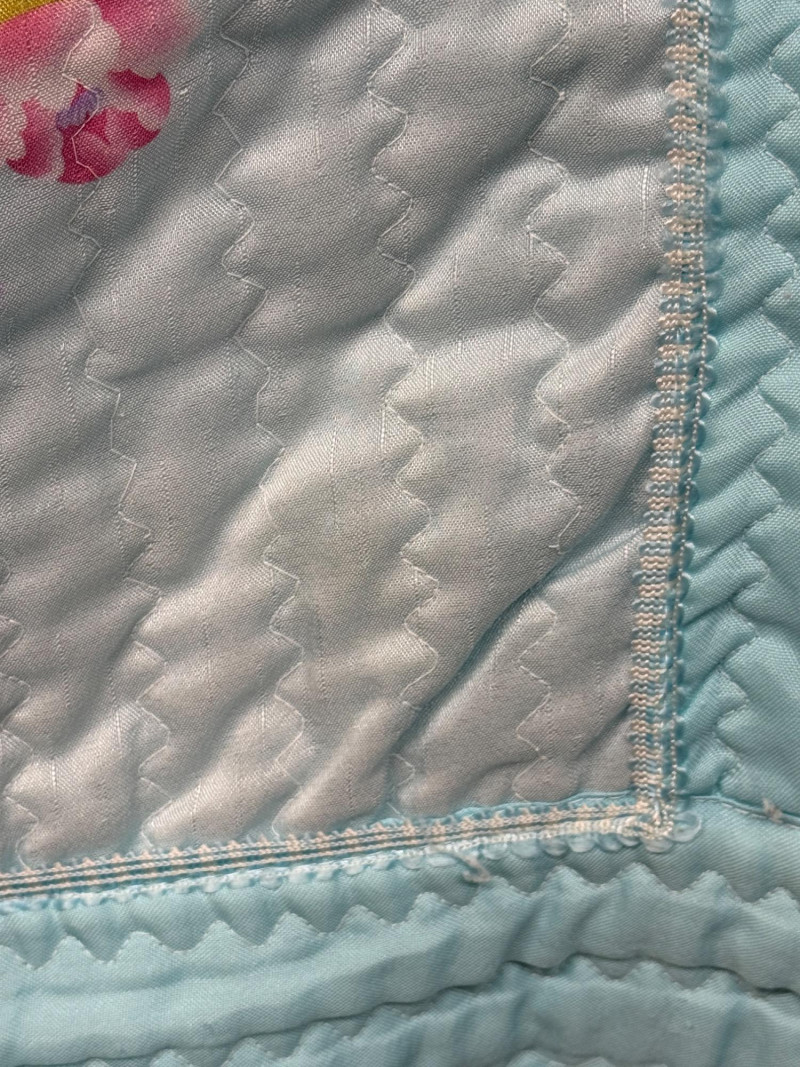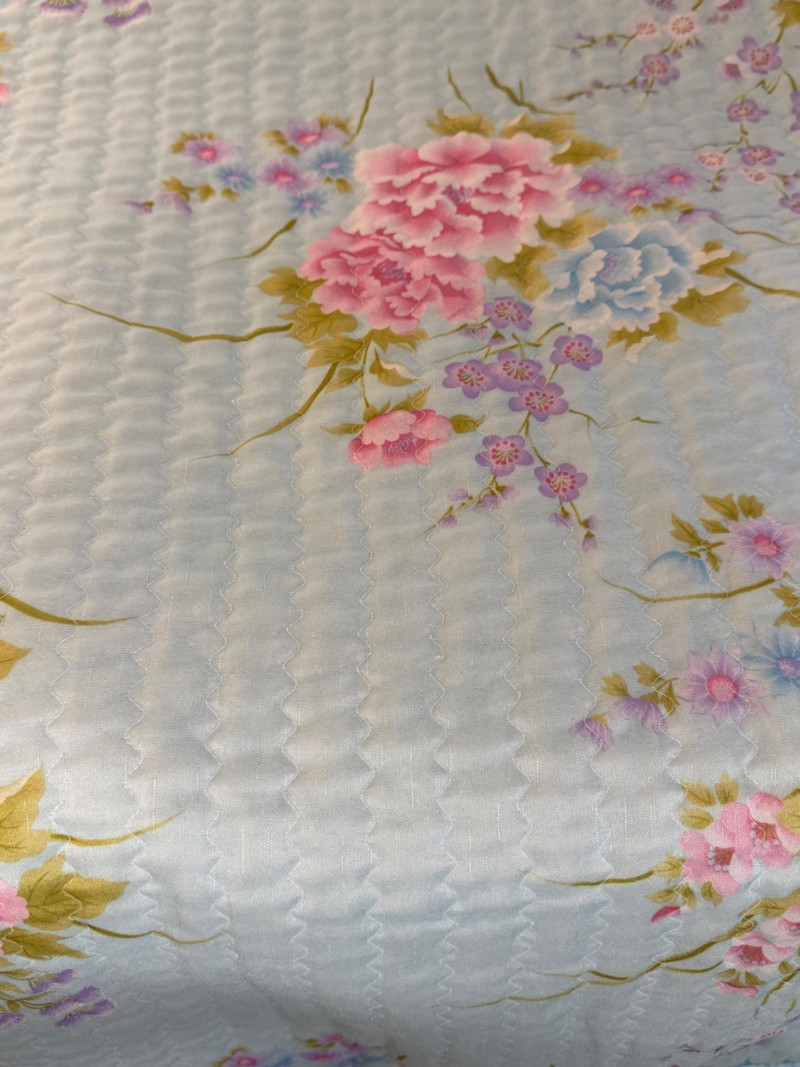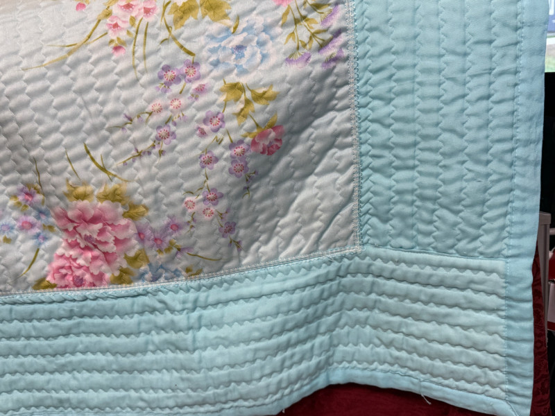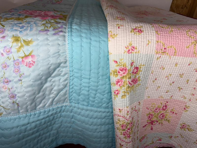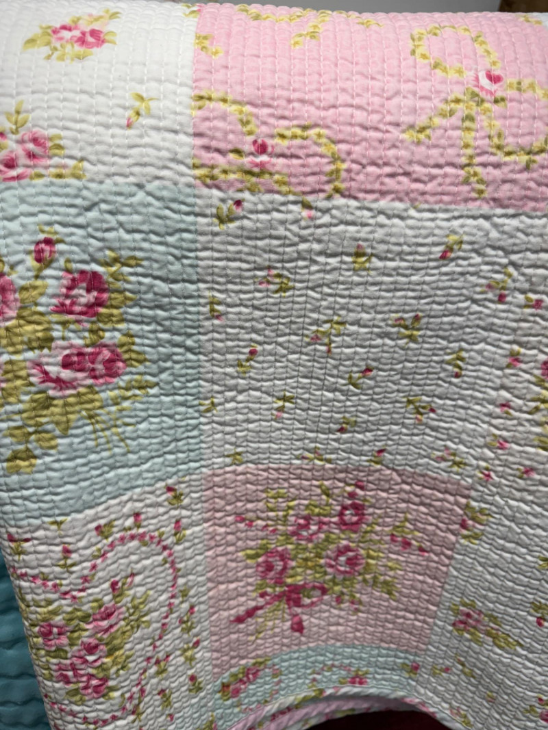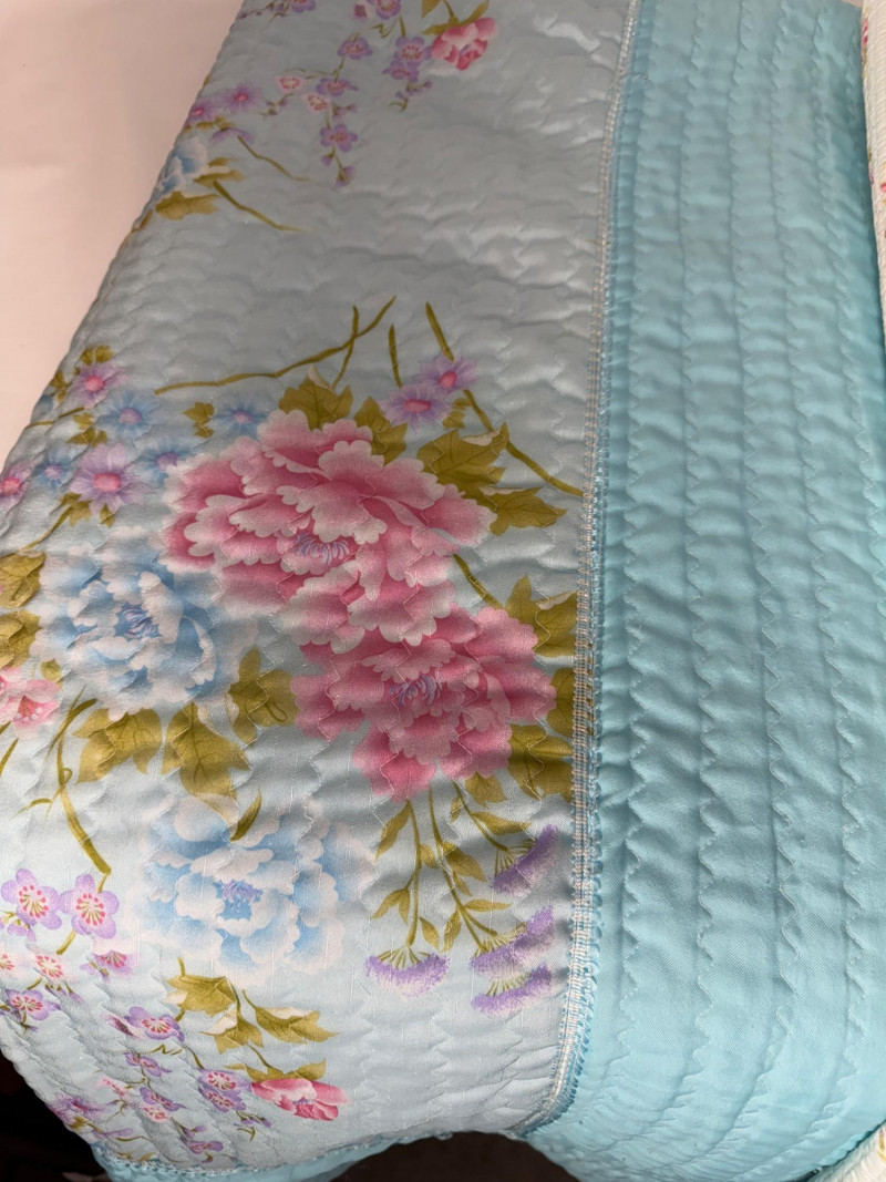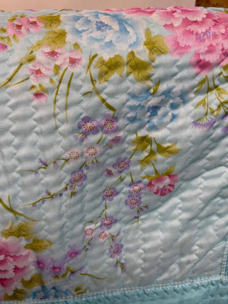 54x74” pastel pink and blue floral & heart print quilt 70x80” Cherry blossom with blue border quilt.