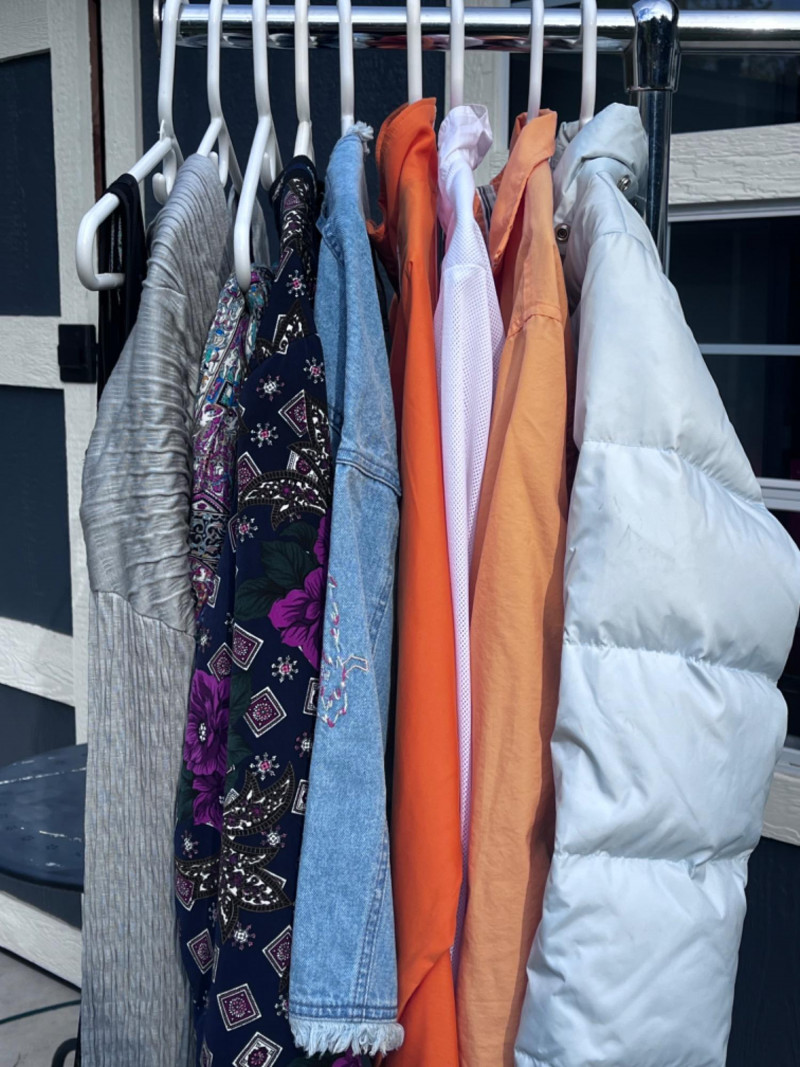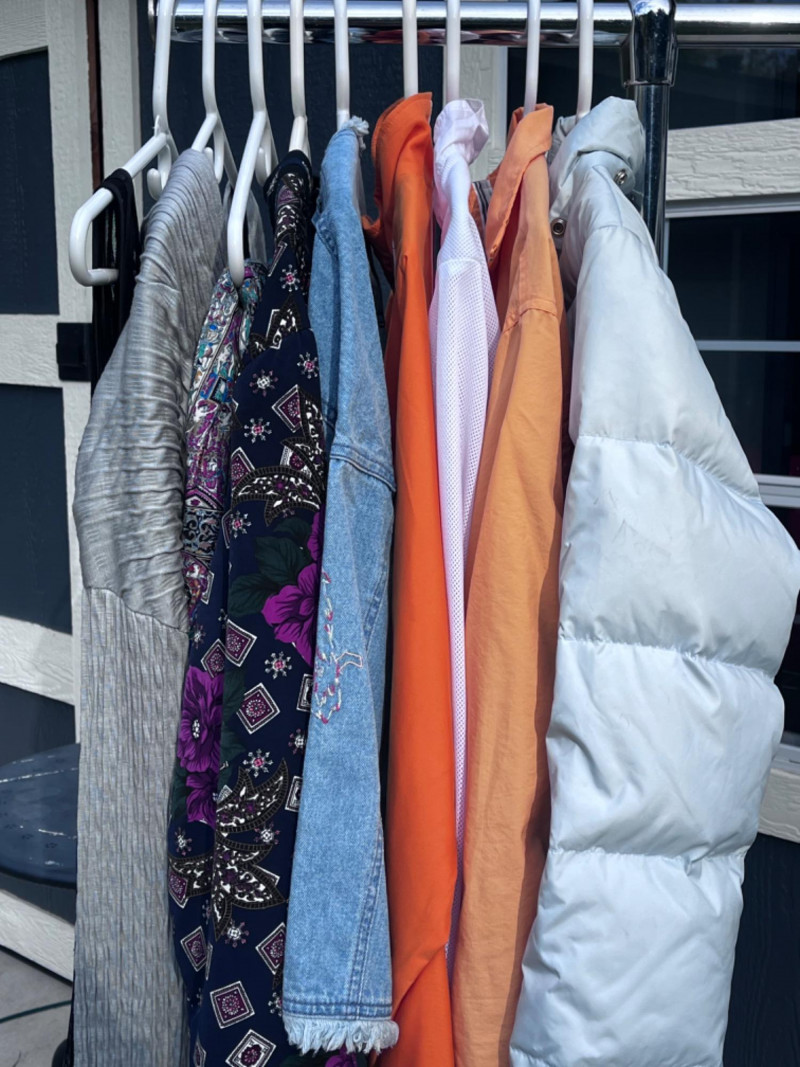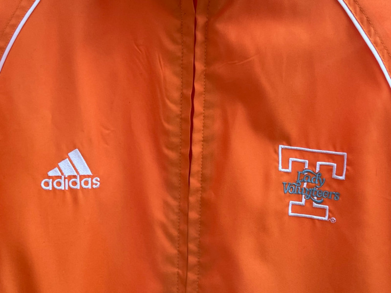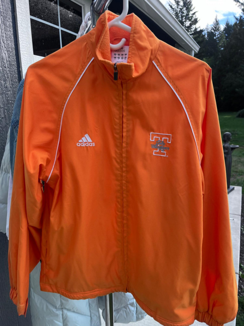 (9) Women’s Jackets and Clothing XS And S Orange university of Tennessee adidas jacket, orange Nike jacket, more jackets, skirts, and a dress.