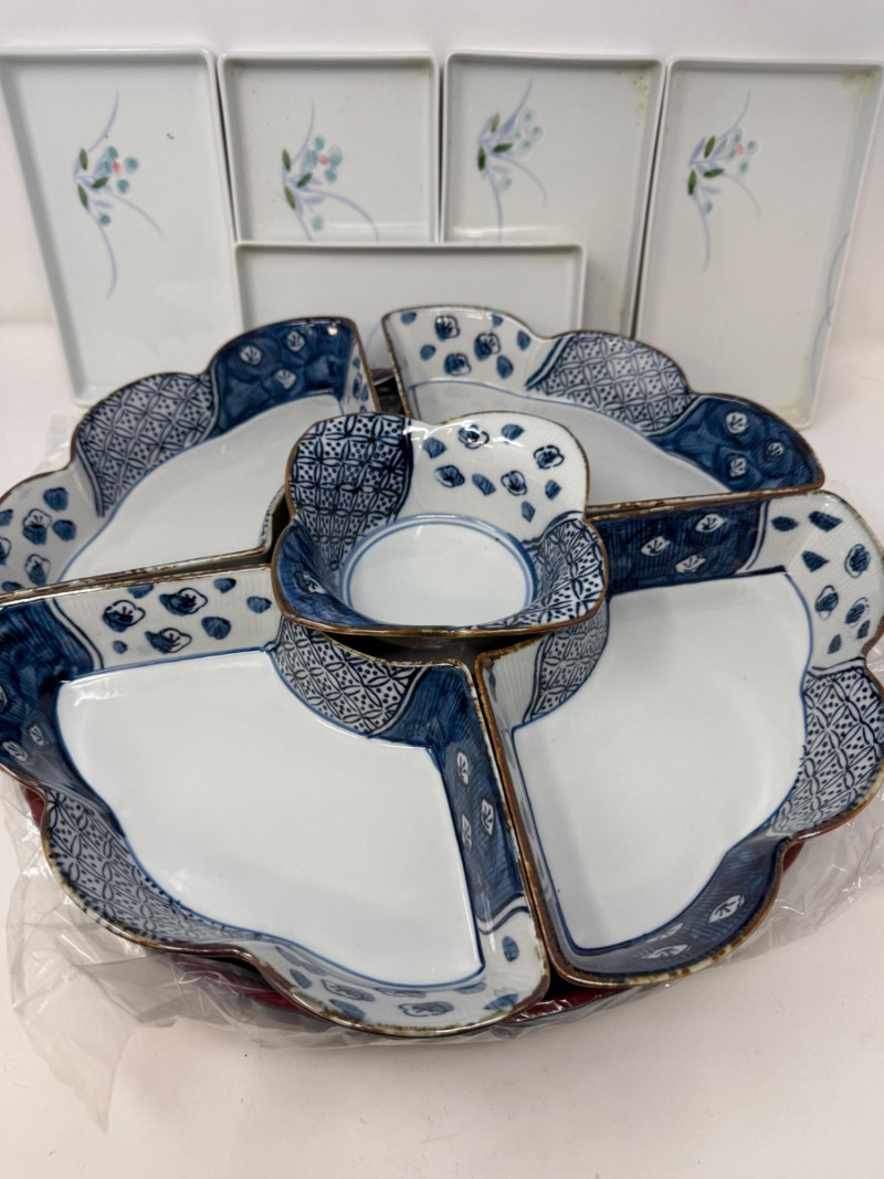 NIB Lazy Susan Sectioned Serving Tray & Appetizer Plates
