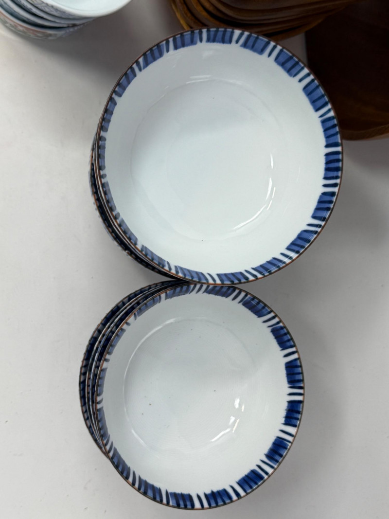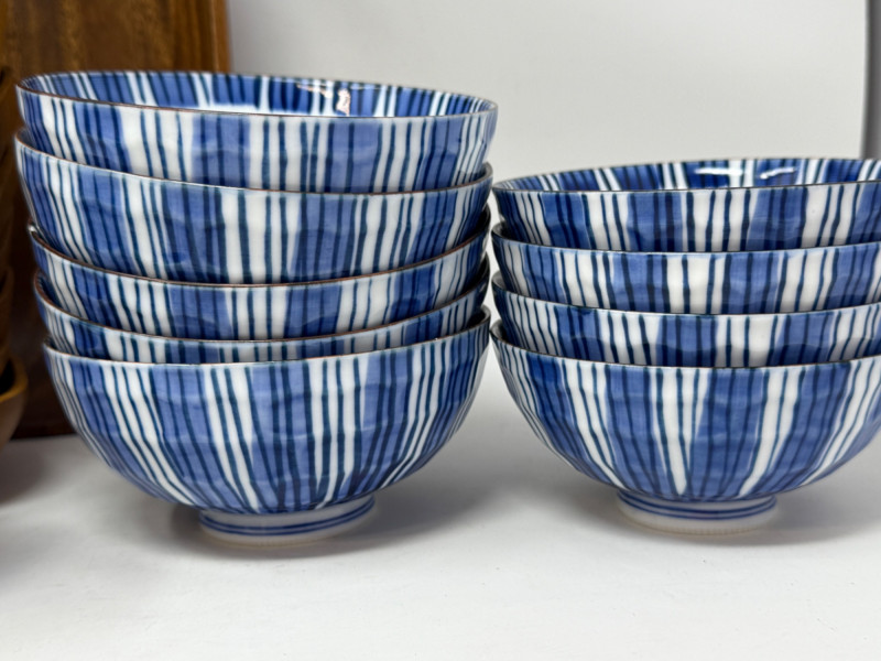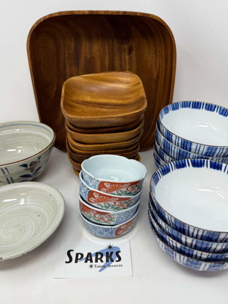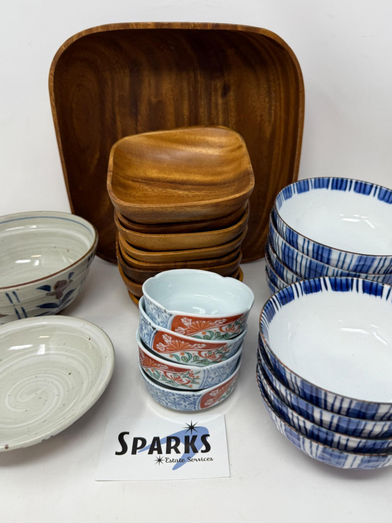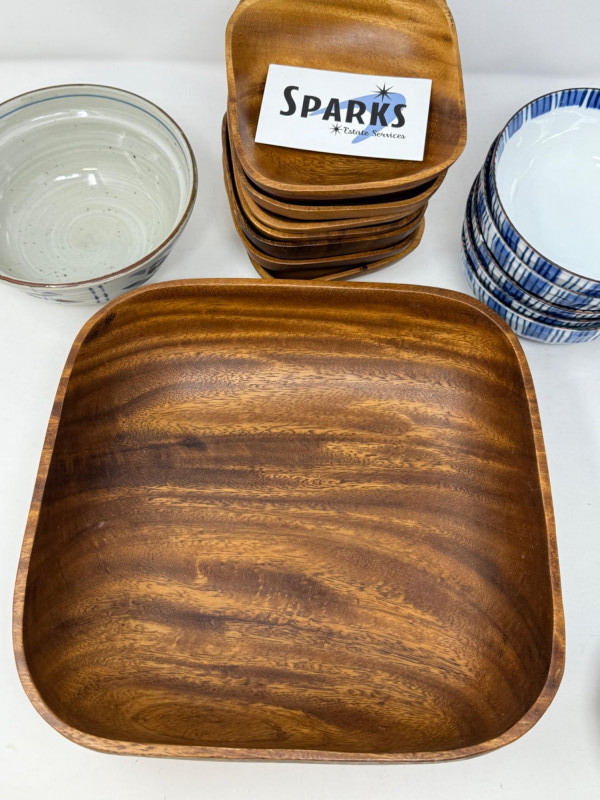 Lot # 131 - 24 Pc Square Wood Bowl Set & Porcelain China Bowls