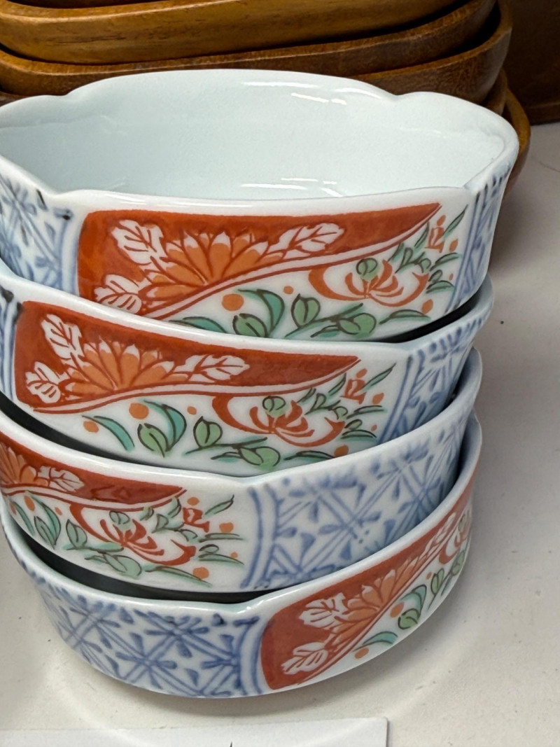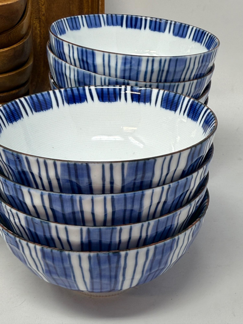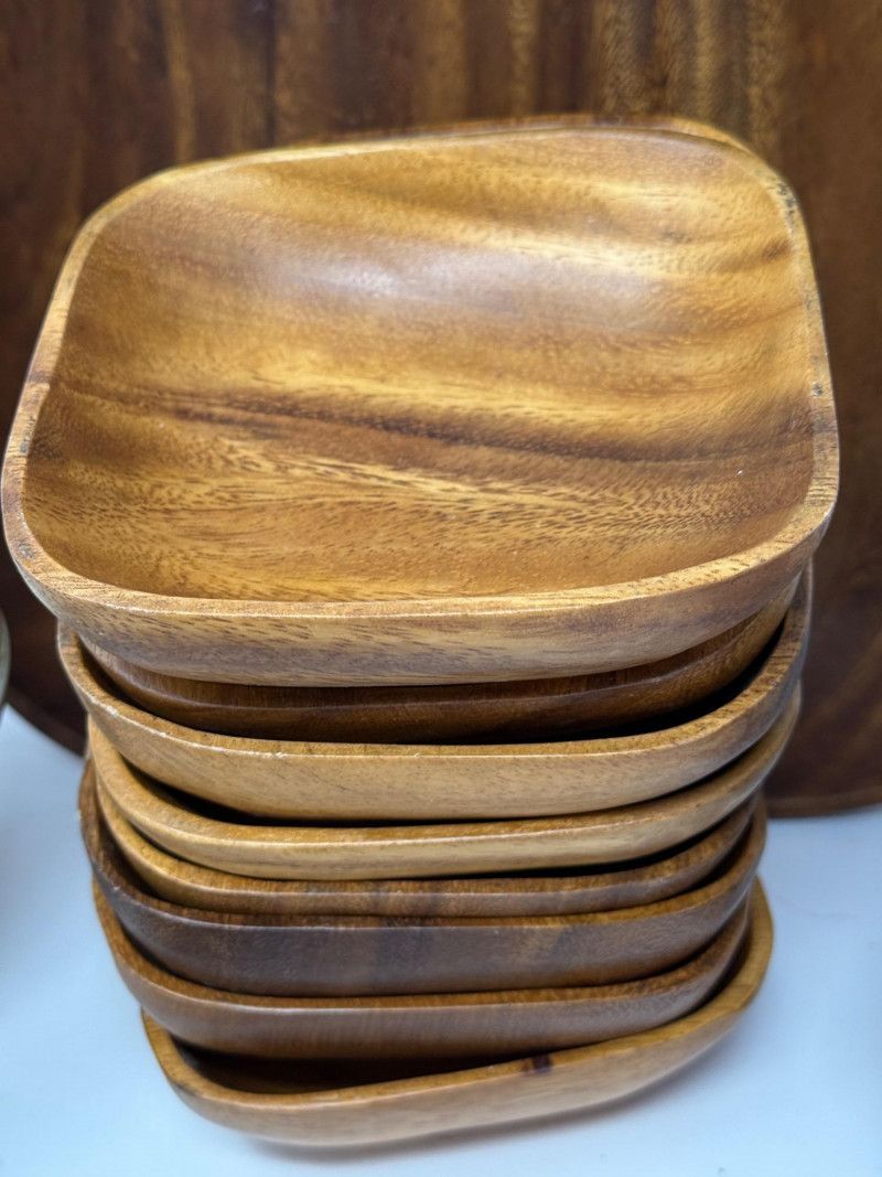 24 Pc Square Wood Bowl Set & Porcelain China Bowls