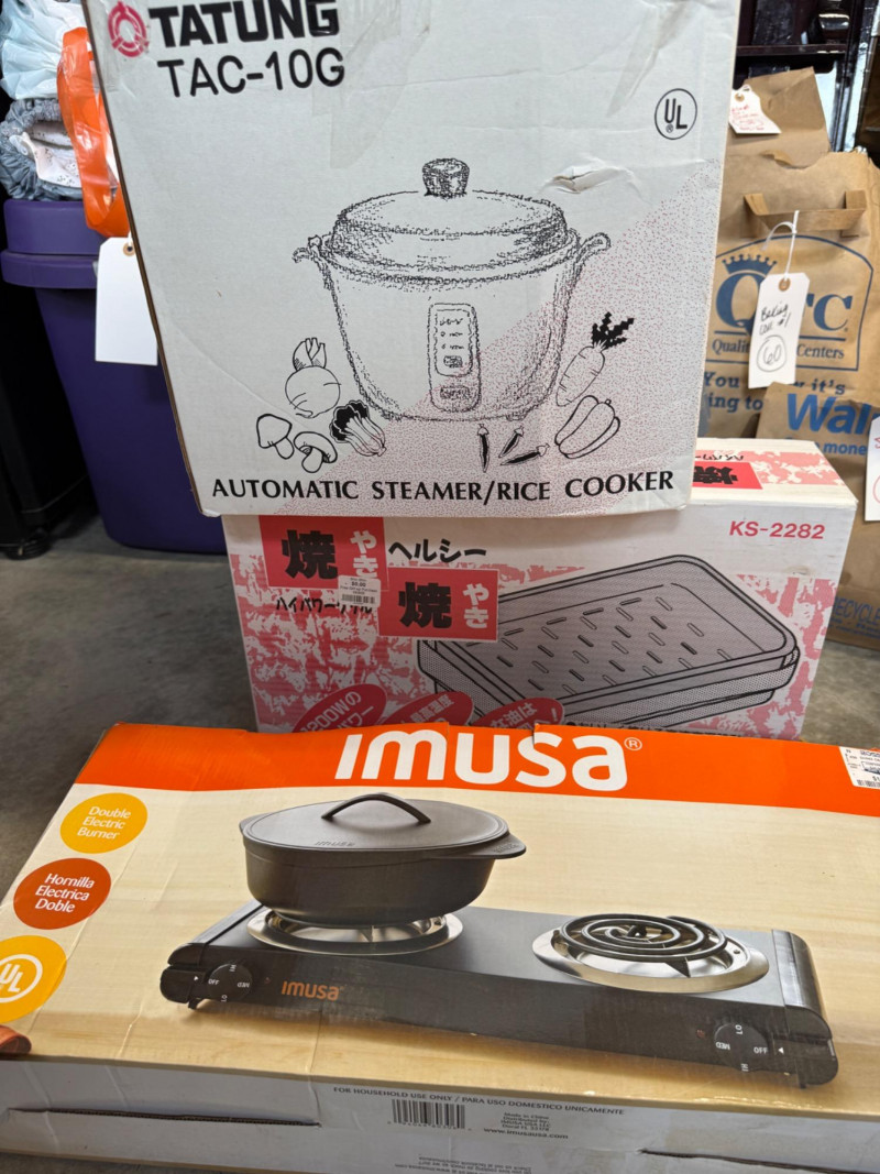Yakiniku Indoor Grill - Double Electric Burner - Rice Cooker/Steamer Tatung Automatic steamer/rice cooker All appear unused in original boxes.