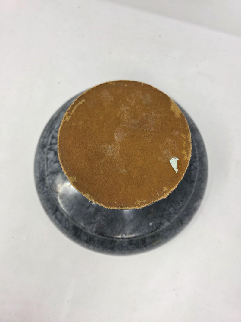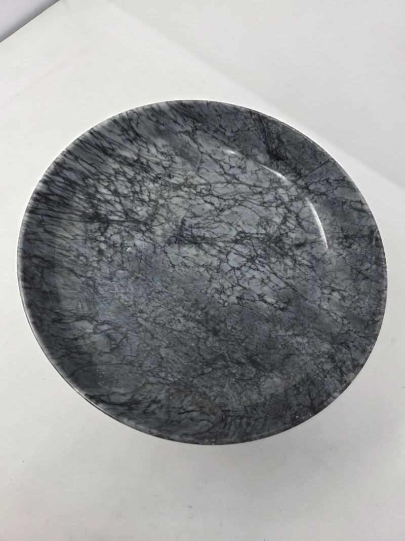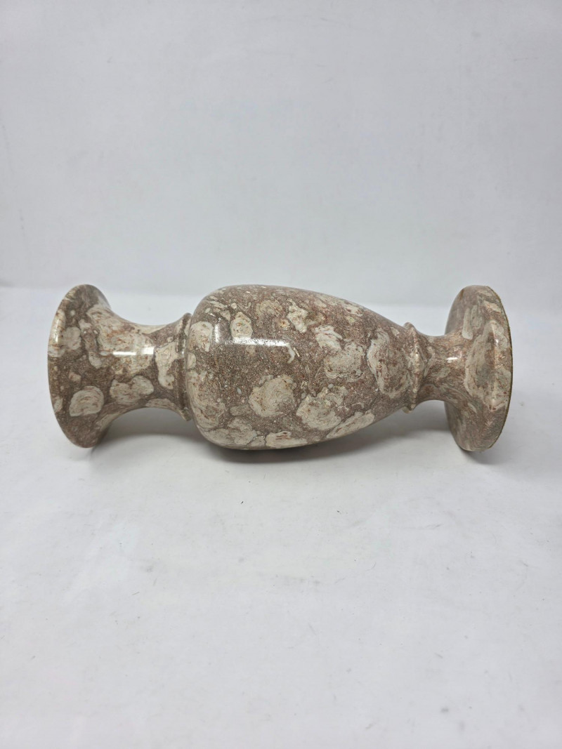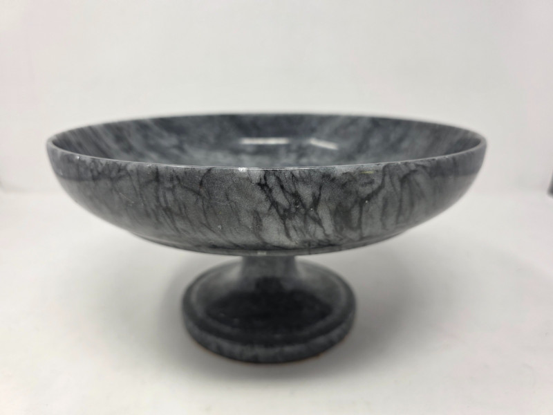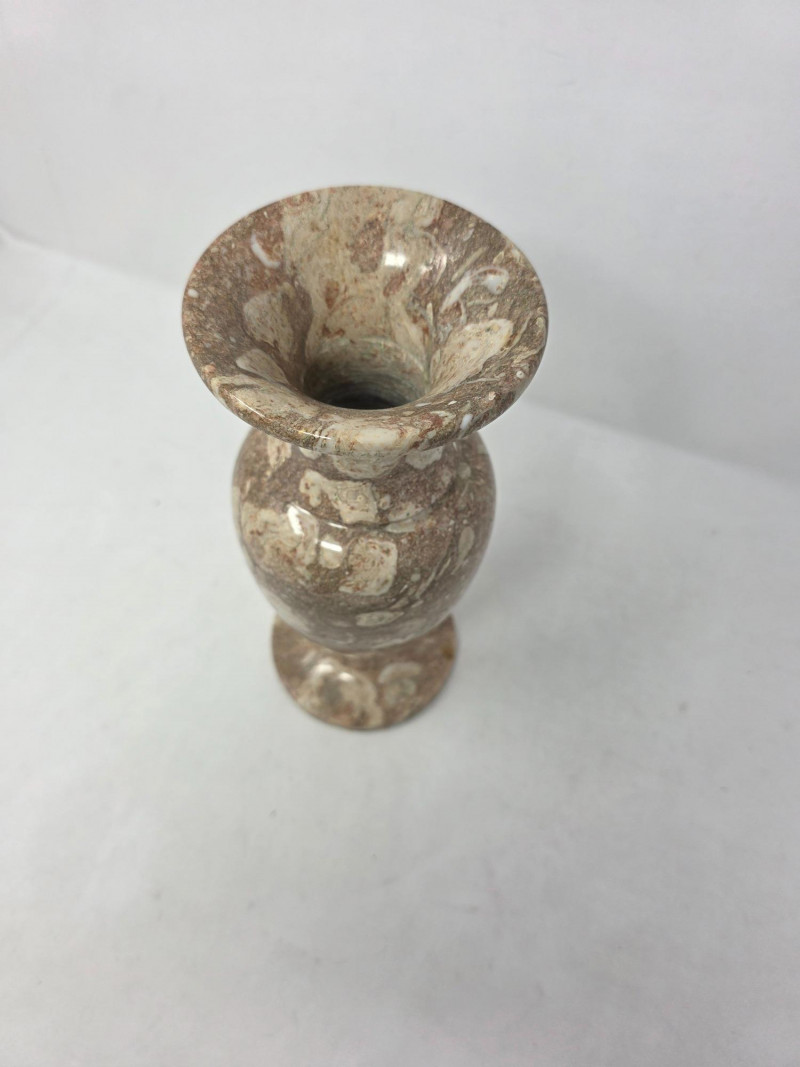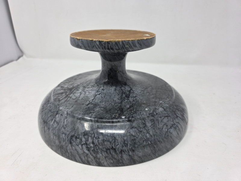 Vintage Veined Marble Pedestal Bowl& Vase Veined Marble Pedestal Bowl - 5"T x 10"W This particular style of marble pedestal bowl, with its relatively simple yet classic form, is often associated with decorative arts from the mid-20th century onwards Veined Marble Vase - 10"T x 4"W This particular vase, made from a veined marble or similar stone, exhibits a classic form that has been popular for centuries. The swirling patterns within the stone add a unique, organic character to the piece