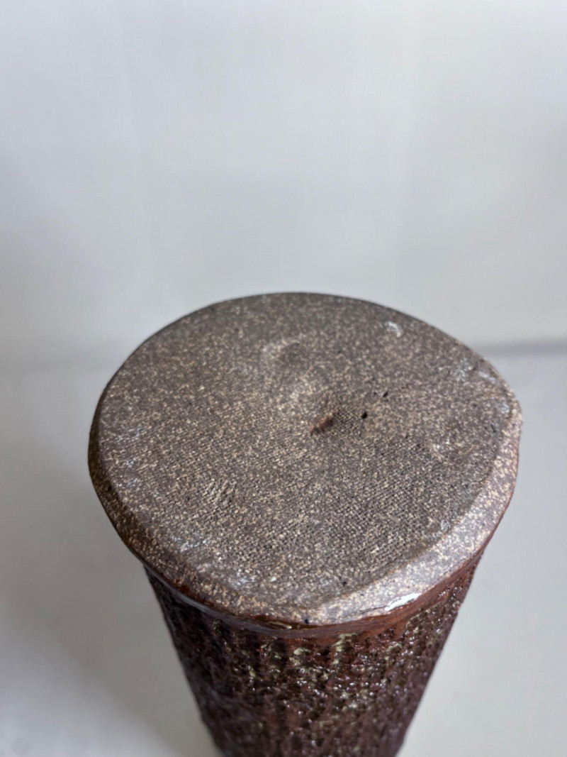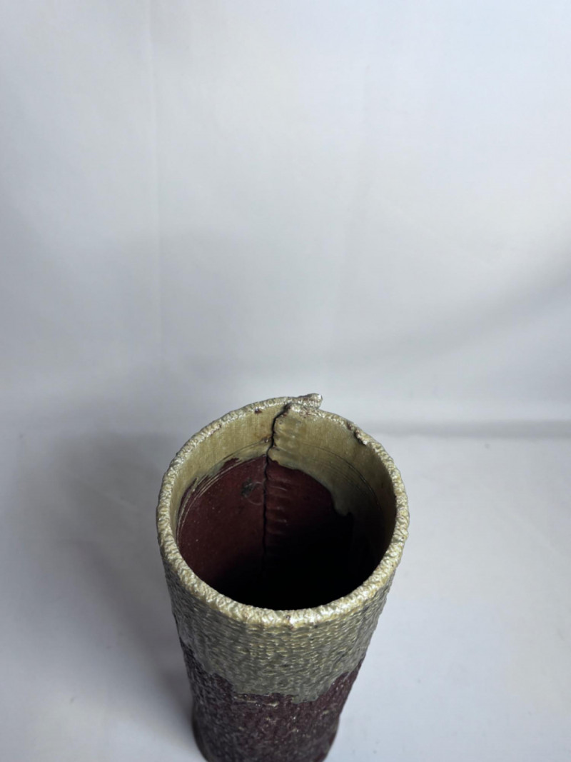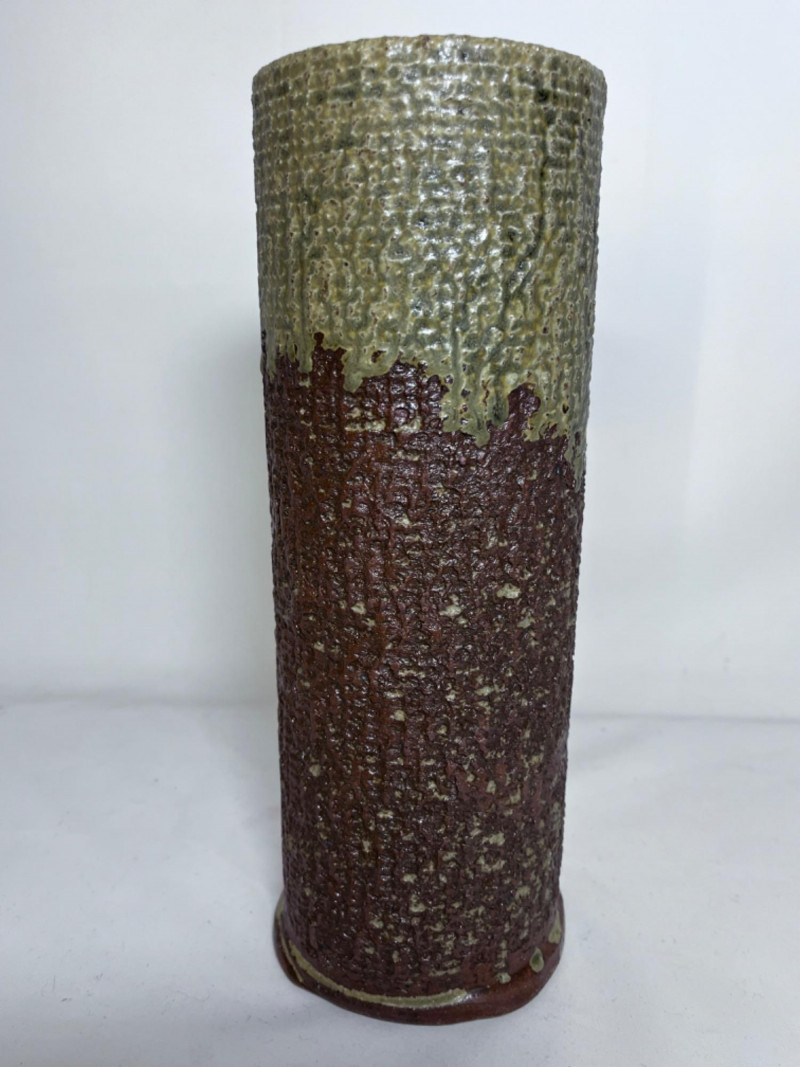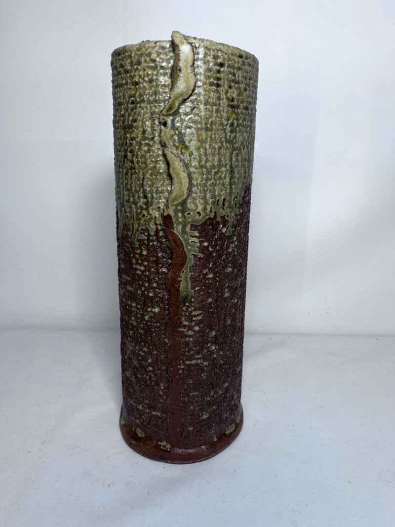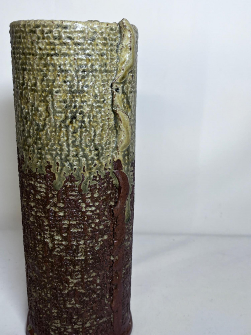Vintage Japanese Ceramic Pottery Vase Brown and green textured glaze. 11”x4”x4”