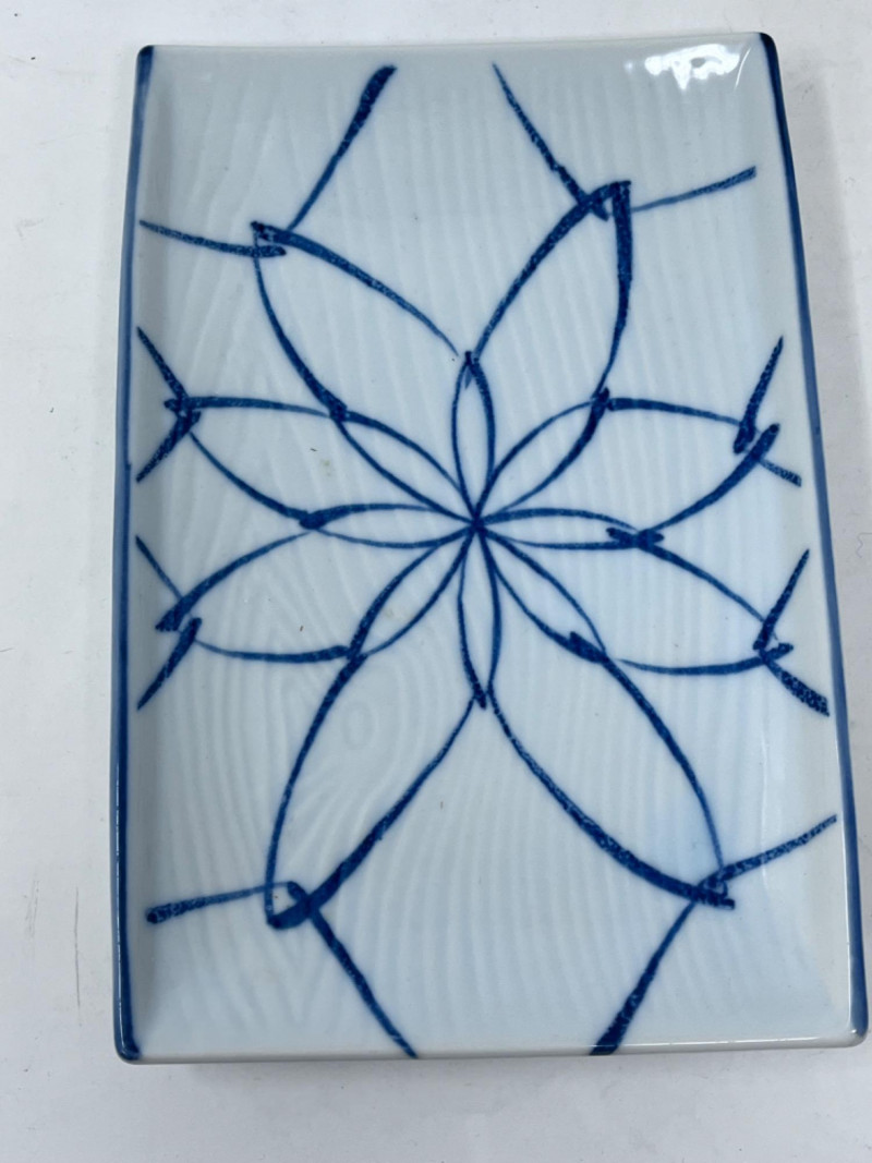 Sushi and Sauce Plates (6) pottery sauce plates (1) blue and white flower design sushi tray