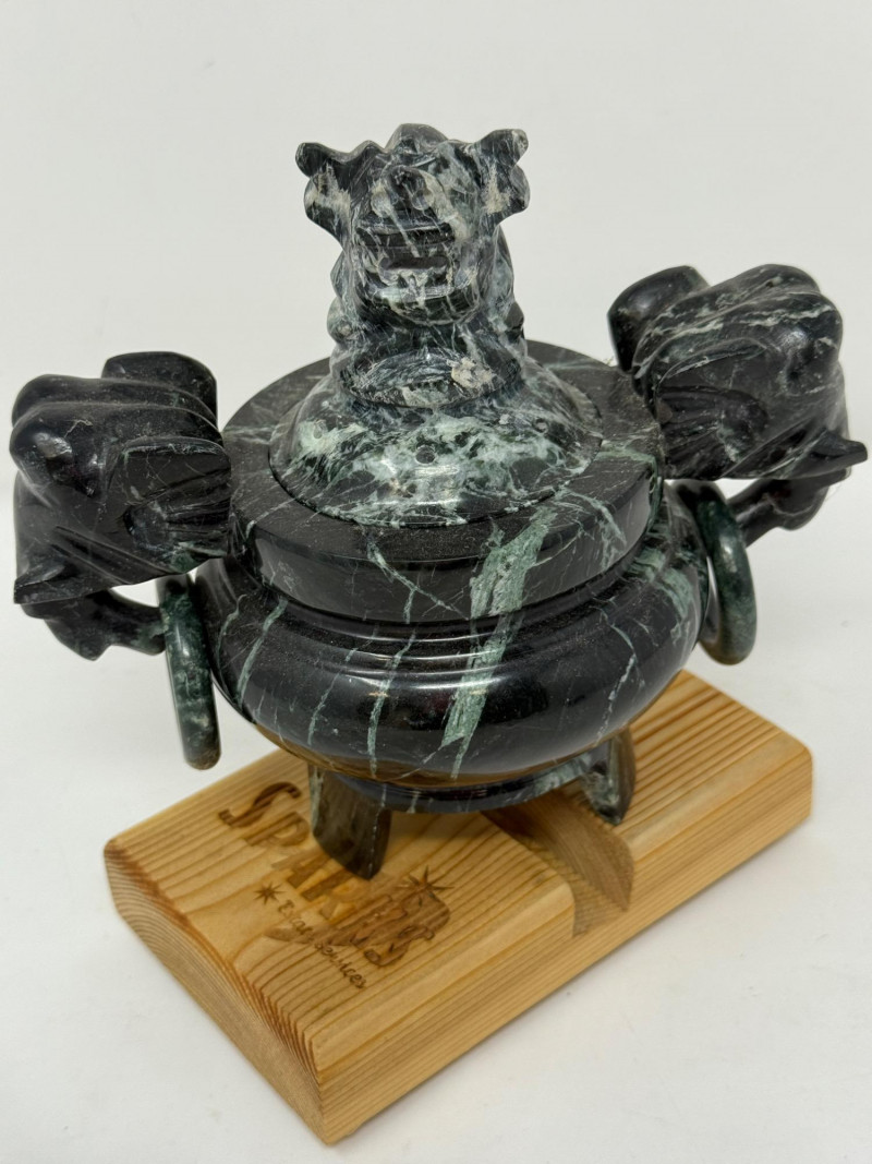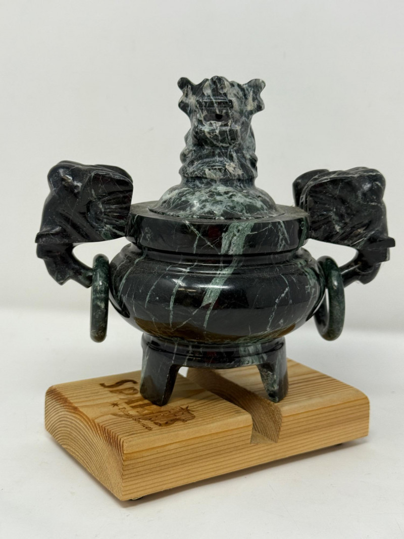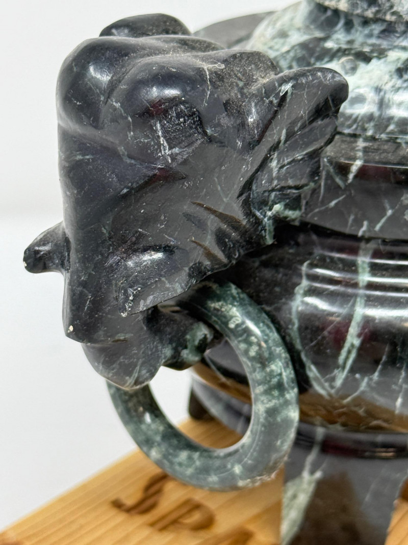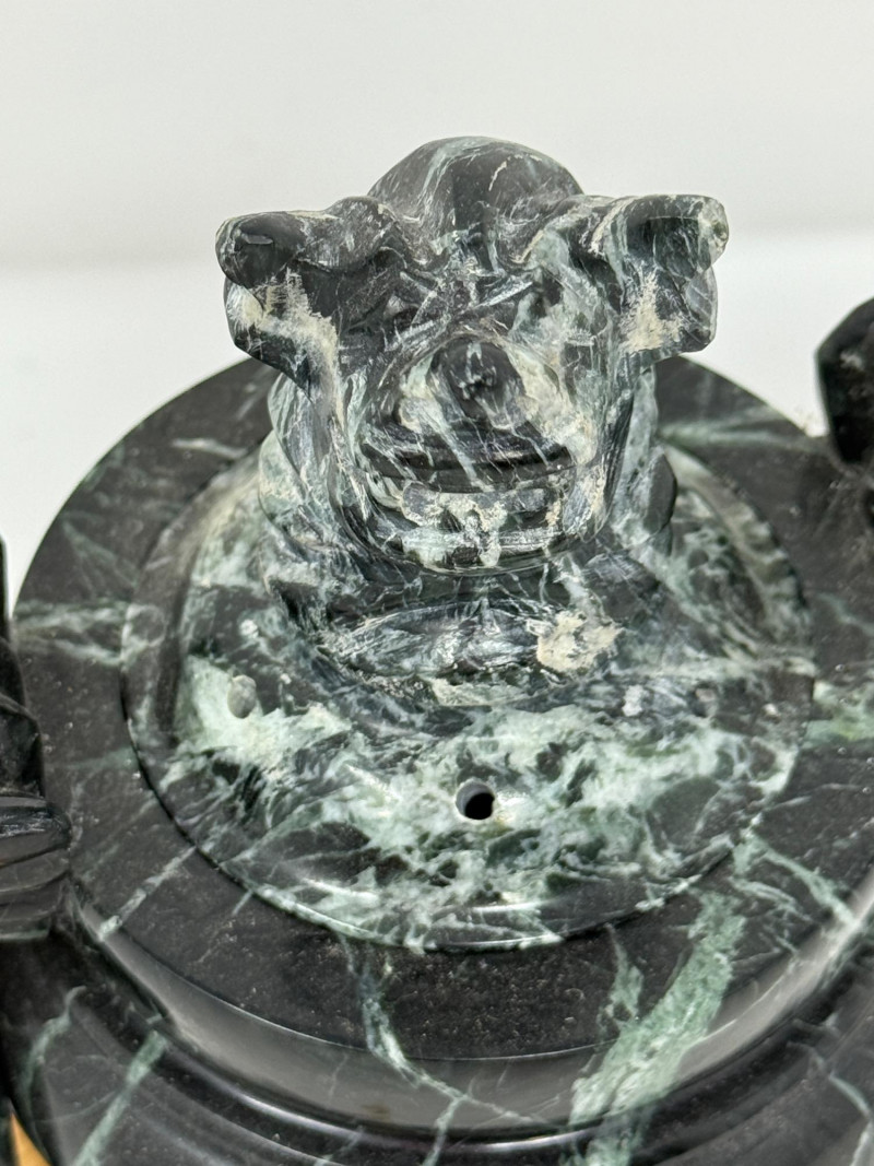 Lot # 150 - Spotted Black Marble Censer with Foo Dog Lid