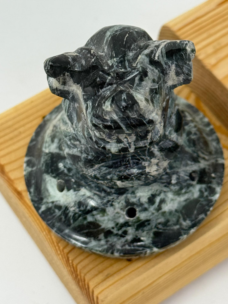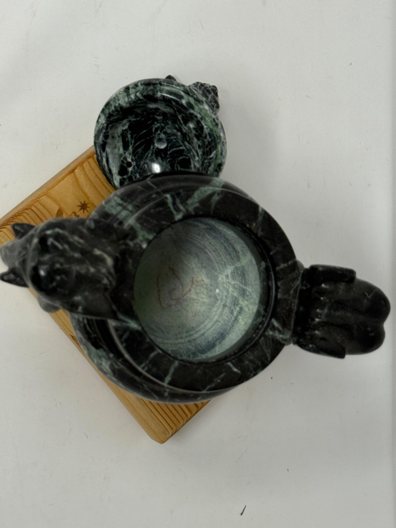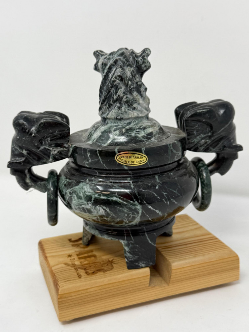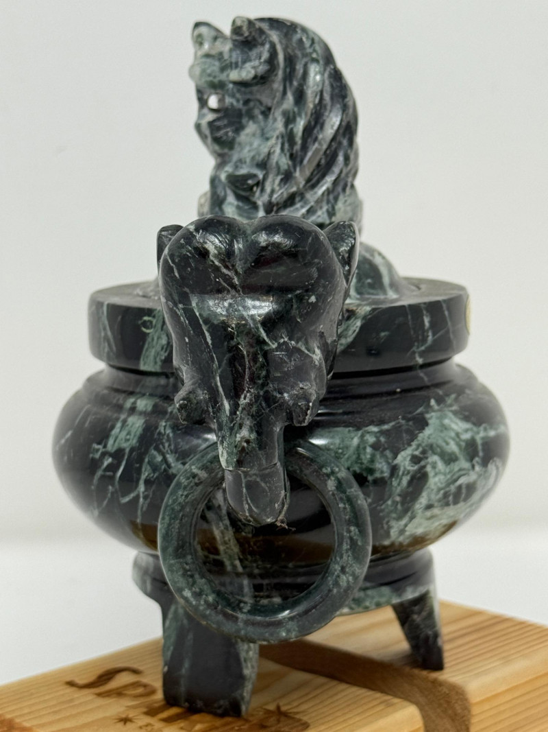 Spotted Black Marble Censer with Foo Dog Lid