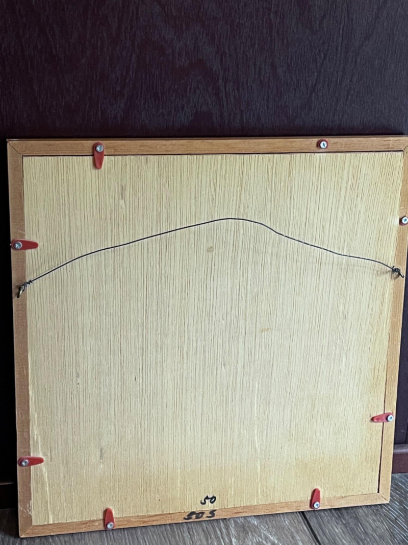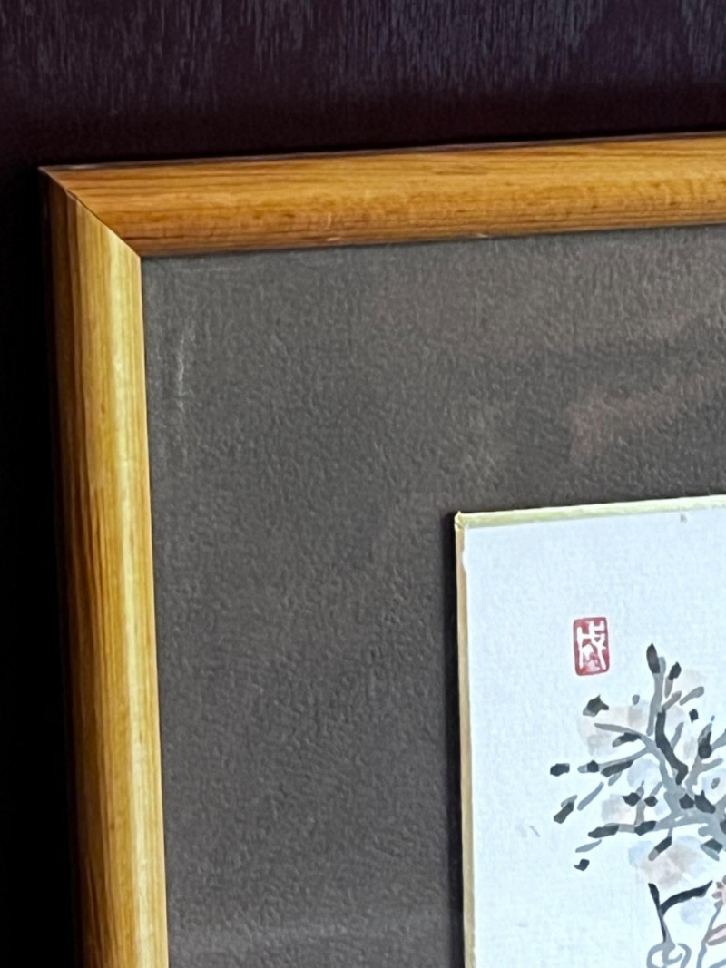 Matted watercolor under glass with wood frame. 9.5”x9.5”