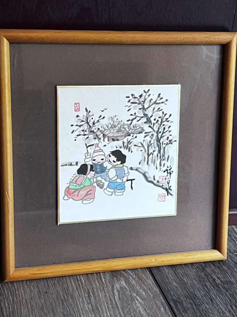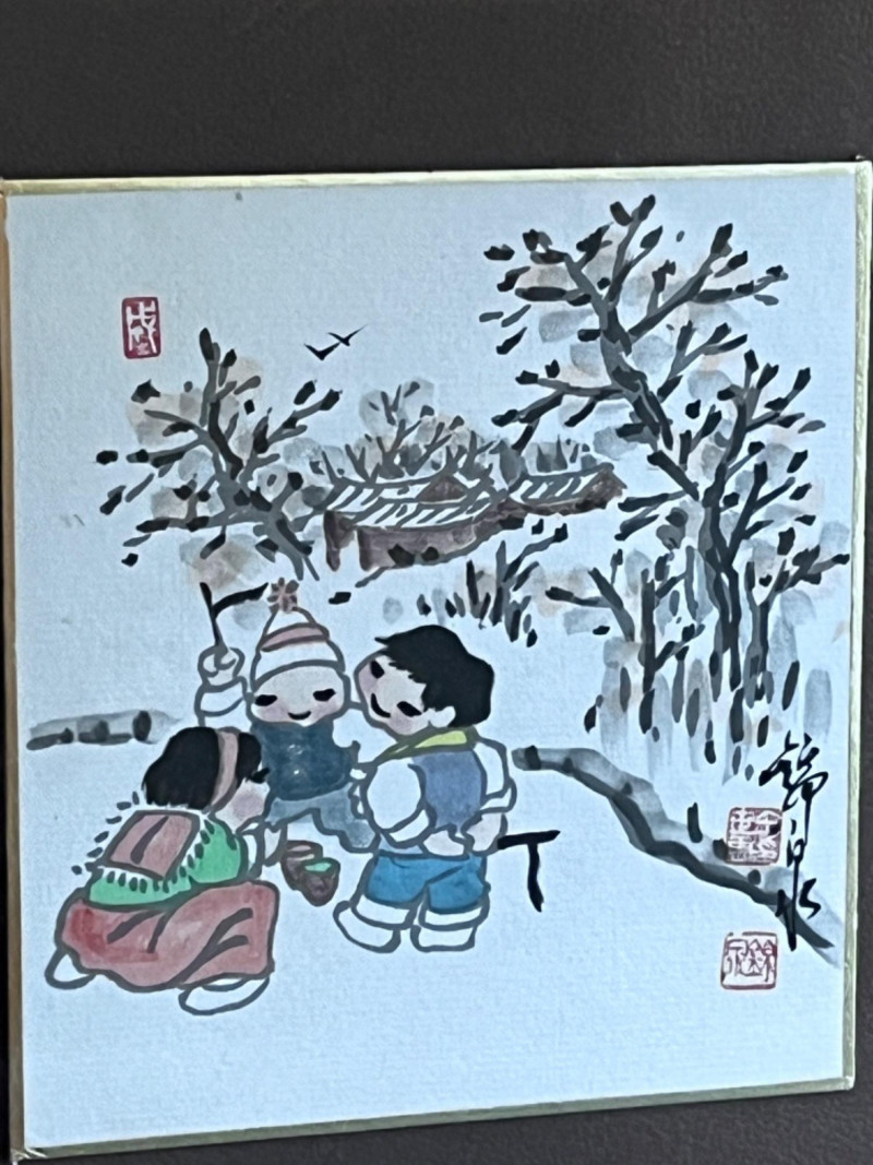 Lot # 158 - Chinese Watercolor— Three Children in Winter
