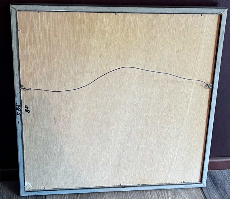 Double matted under glass in black plastic frame. Slight discoloration to matting.