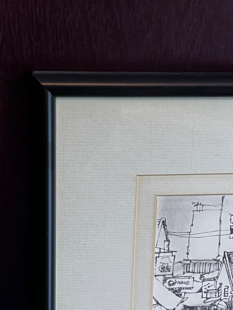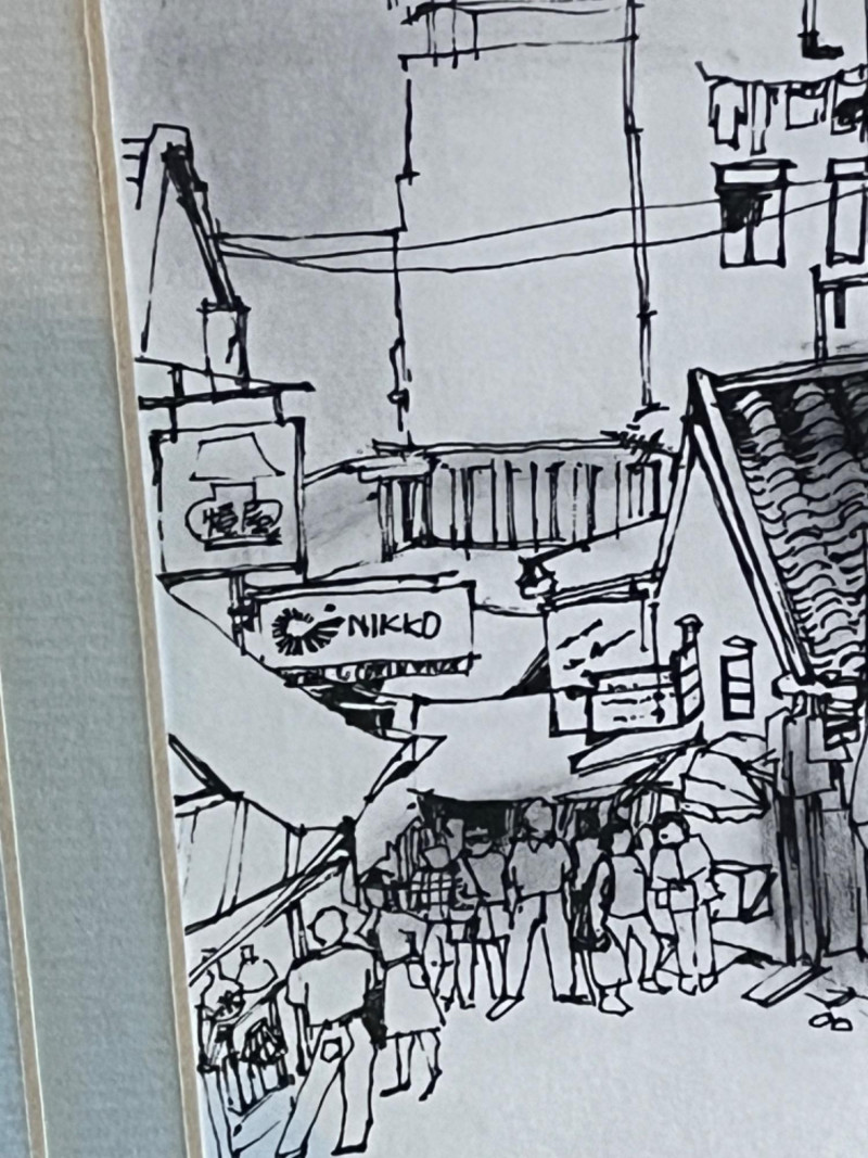 Street Market Ink Drawing Print Signed Stanley Clara 10.5”x10.5”