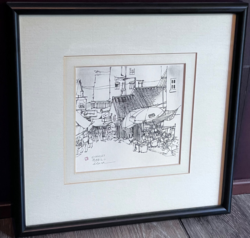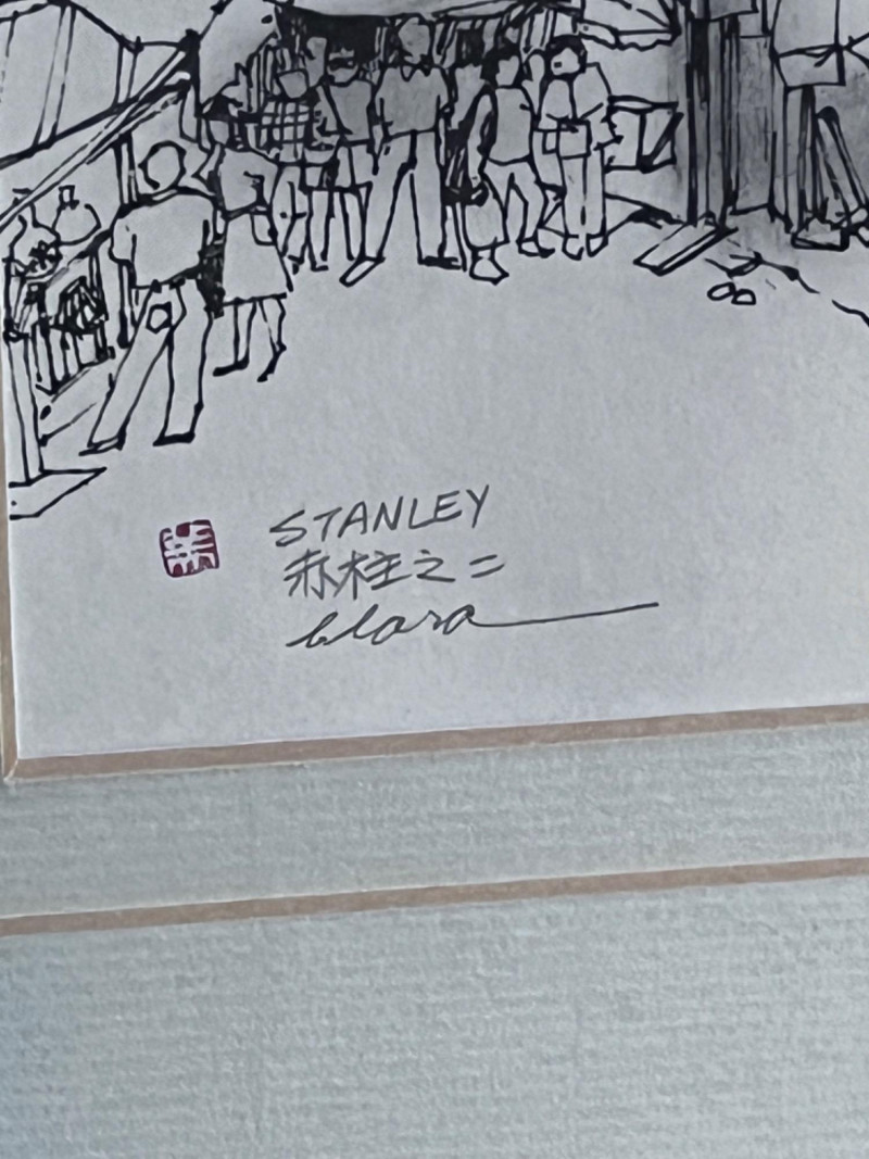 Lot # 159 - Street Market Ink Drawing Print Signed Stanley Clara