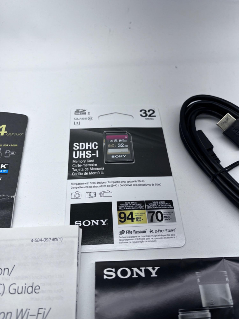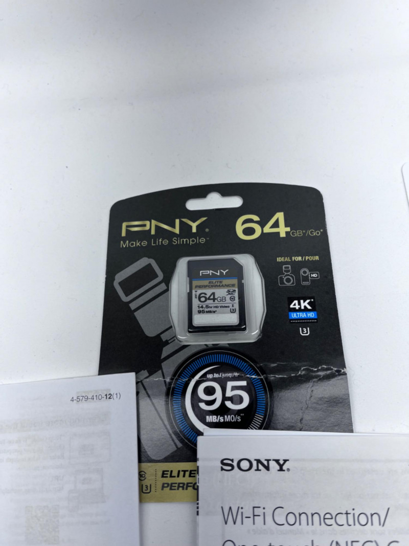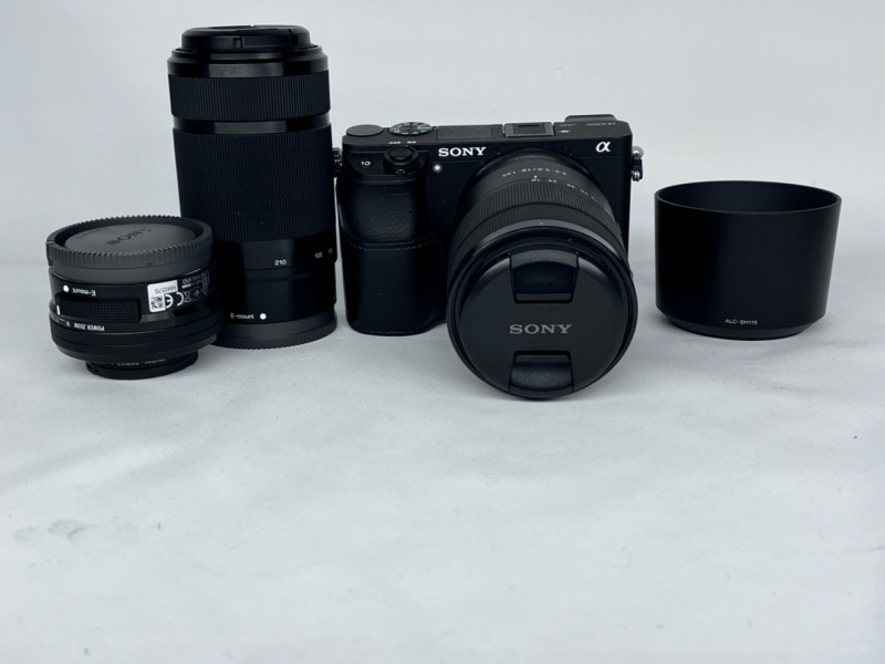 Sony DSLR a6300 Mirrorless Camera and Accessories Sony DSLR a600 mirror less camera Comes with: SDHC UHS-I 32GB memory card, PNY 64GB memory card, SanDisk 128GB memory card, 3.5-5.6/16-50 Optical Steady Shot lens, 3.5-5.6/18-135 Optical Steady Shot lens, 4.6-6.3/55-210 Optical Steady Shot lens, ALC-SH115 lens hood, HDMI cord, Vivitar camera bag, Olympus TTL flash mount, and instruction manuals.