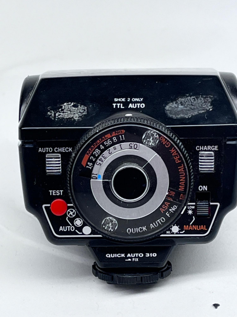 Battery charger not included. Has not been turned on. Flash needs batteries.