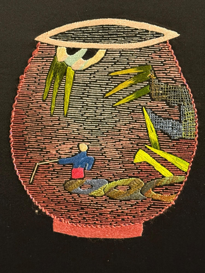 Lot # 173 - Vintage Korean Embroidered Asian Folding Screen/Room Divider