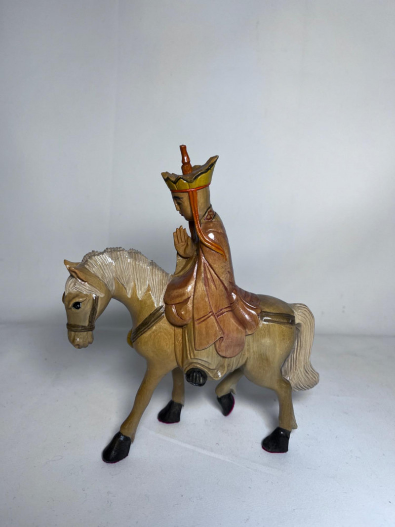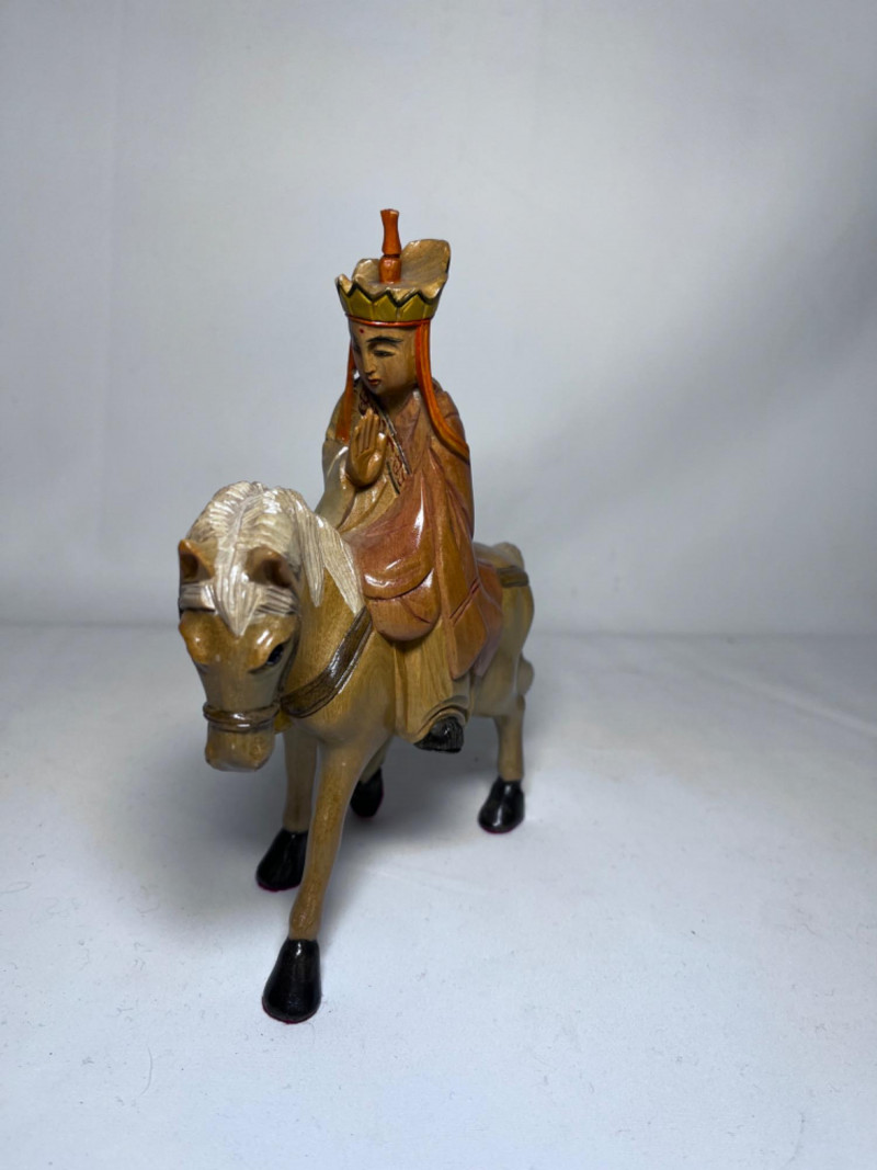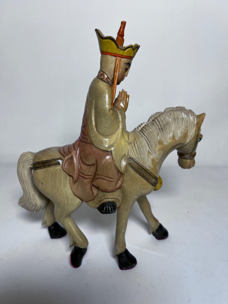 "Journey To The West" Hand Carved Tan Sanzang Figurine Hand carved wood figurine of Tan Sanzang from the 16th century novel “Journey to the West”. 7.5”x6”x3”
